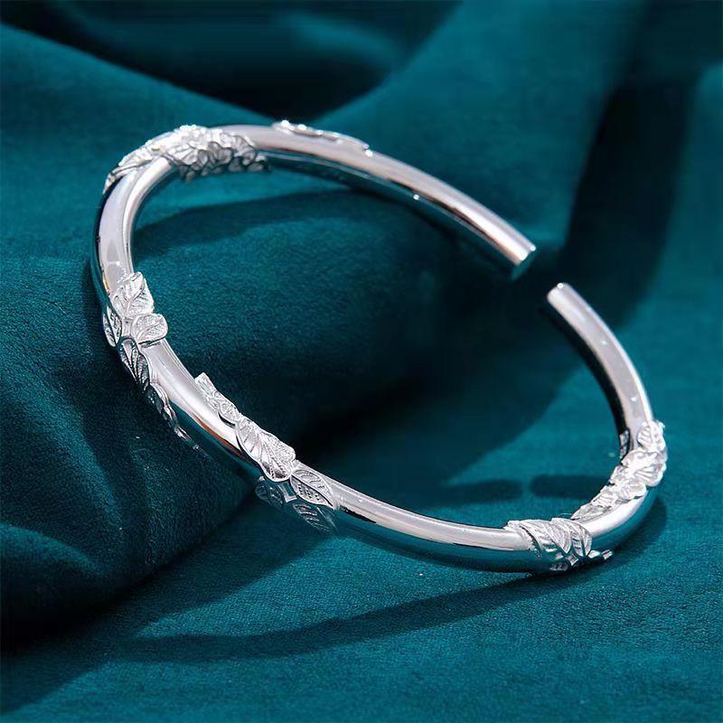 Белый Медный Посеребренный Цветочный Браслет-Манжета - Коллекция Три Жизни Три Мира Универсальный Браслет для Женщин