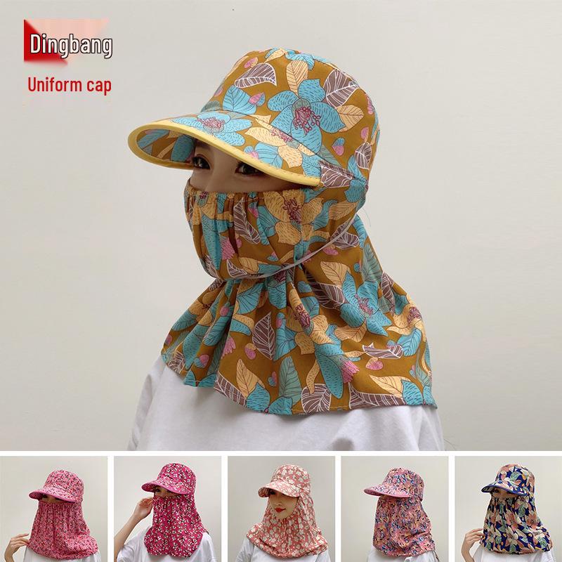 Женская летняя шляпа от солнца с широкими полями, шалью и маской для лица для езды на велосипеде и сбора чая - Дышащая и защитная.