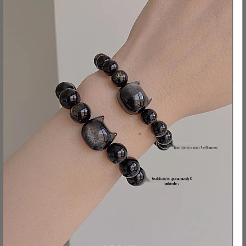 Скрытый Мой Друг: Браслет из натурального серебристого обсидиана с головой кошки для женщин - Милый, крутой и личный.