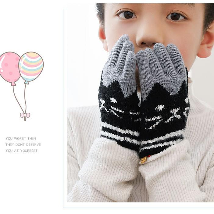 Детские зимние варежки без пальцев с мультяшным котенком - Теплые, милые, вязаные под кашемир для учеников начальной школы