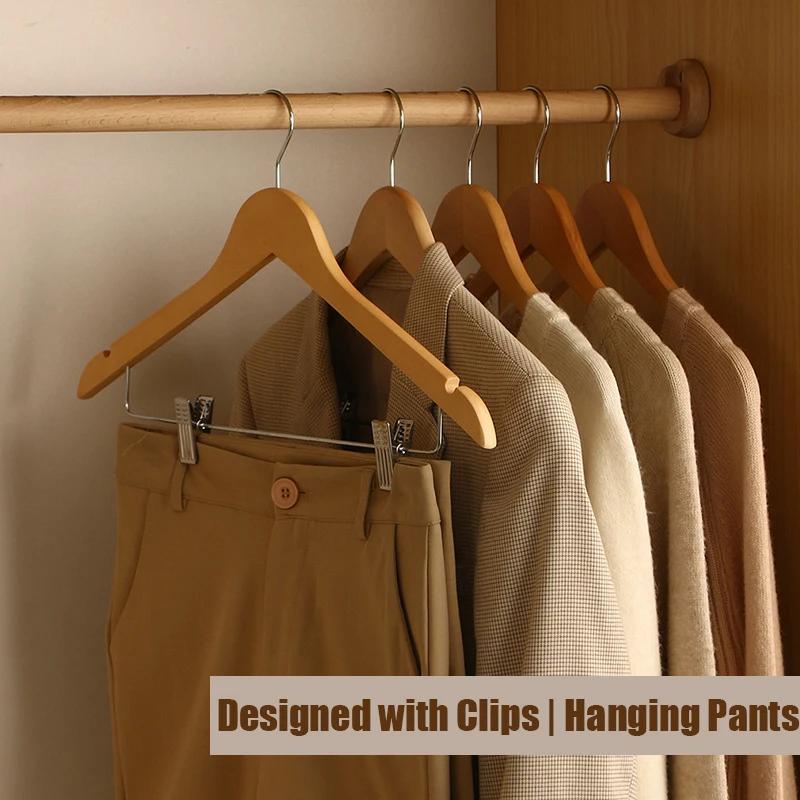 Высококачественные деревянные вешалки для костюмов, вешалка для юбок с зажимами 5/10/20 шт. в упаковке, деревянная вешалка для брюк с вырезами для плеч для пиджака