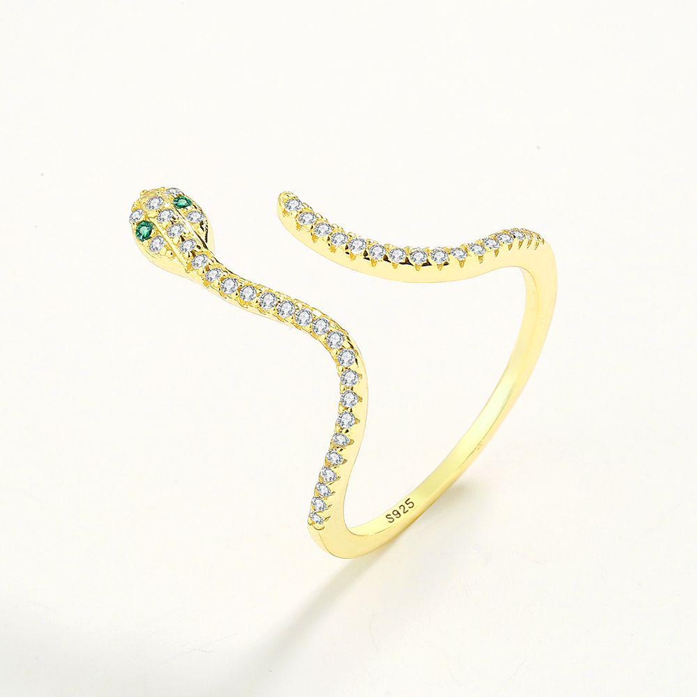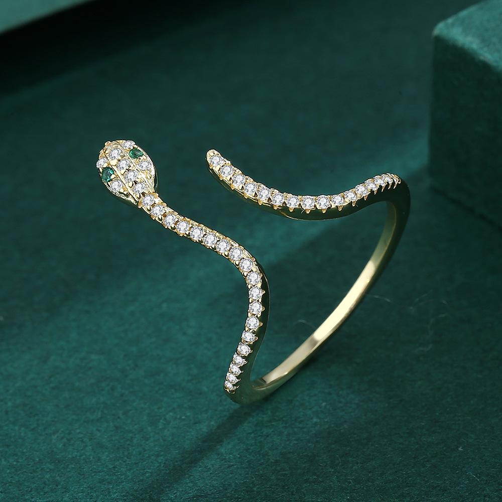 Открытое кольцо с цирконом с покрытием из 14-каратного золота: Серебро 925 пробы, микропаве, дизайн змеи с бриллиантами для женщин - европейский и американский стиль.
