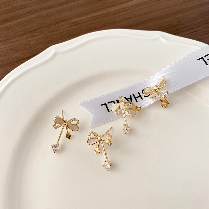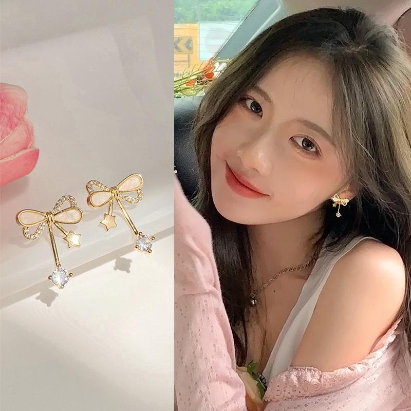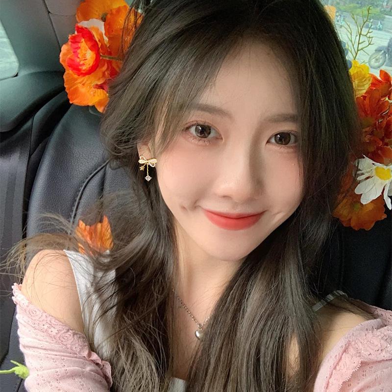 Корейские серьги-пусеты из серебра S925 с инкрустацией бриллиантами для женщин – Элегантный и простой дизайн