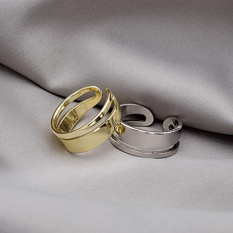 Корейское минималистичное двойное открытое кольцо - Полый дизайн с неровными линиями для женщин