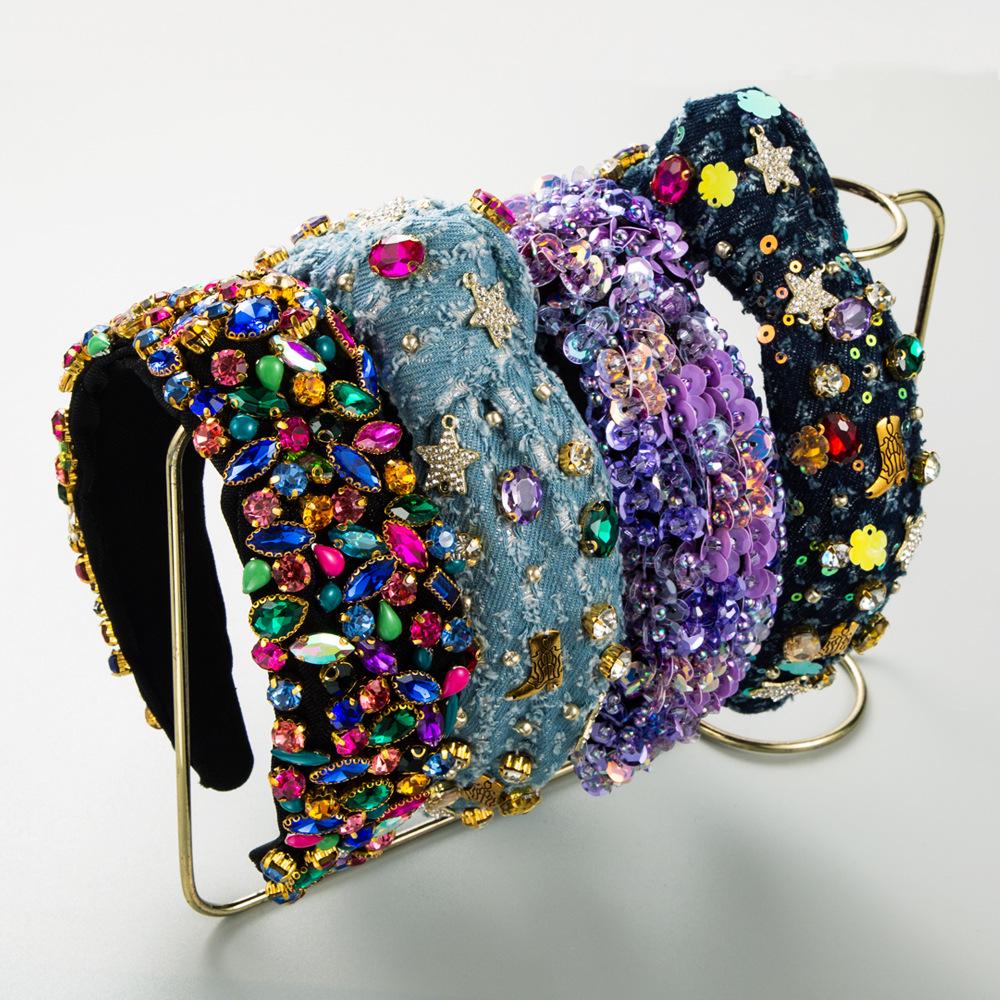 Барочная повязка на голову с широкими полями и стразами: Элегантный аксессуар для волос в виде бриллиантового узла для женщин
