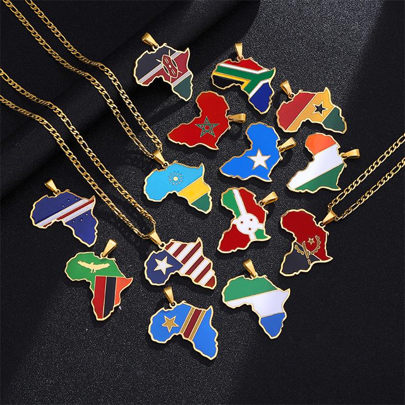 Африканская карта Хип-хоп Ожерелье из нержавеющей стали: Нигерия, Сомали, Ангола Дизайн