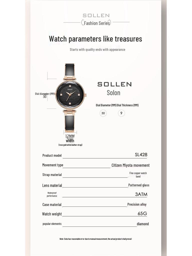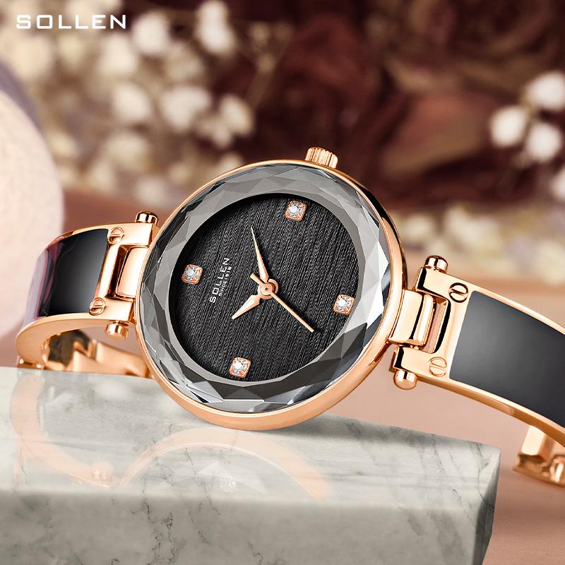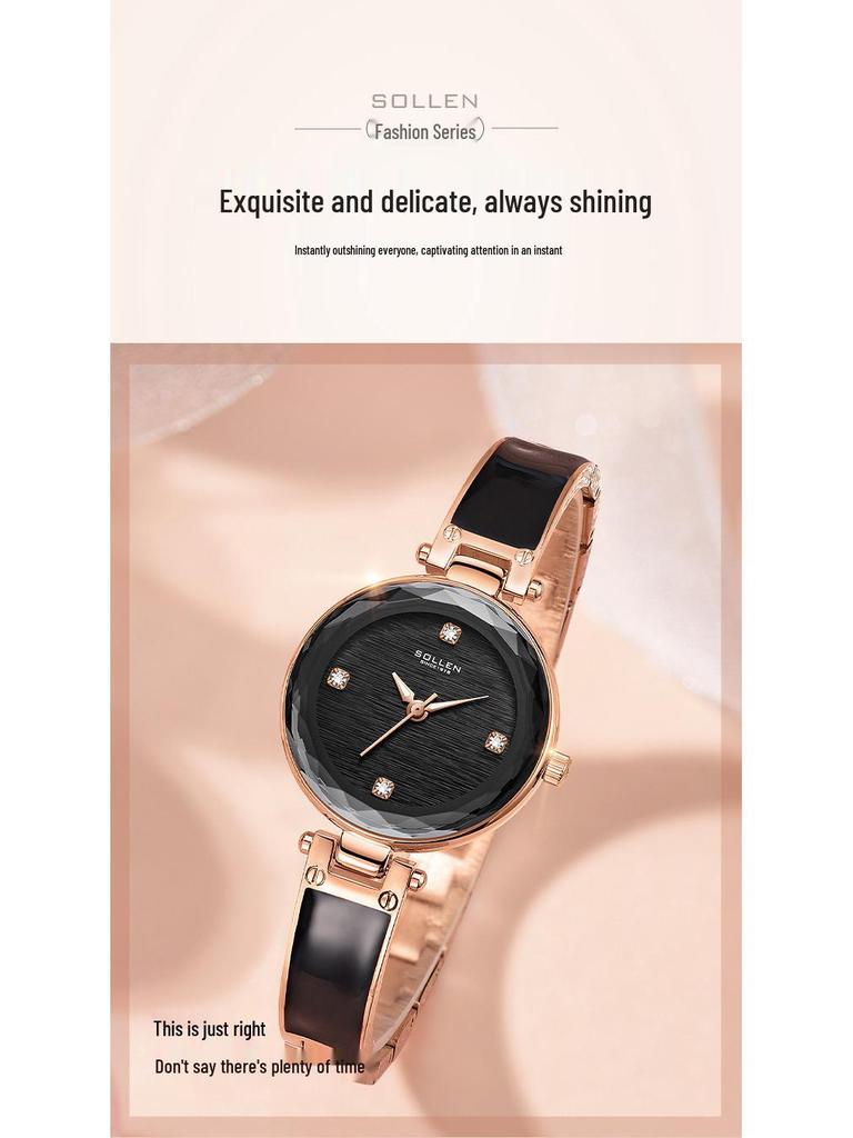 SOLLEN Женские элегантные кварцевые часы с тонким браслетом - Минималистичный корейский стиль
