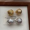 Европейские и американские нишевые серьги-овалы с двухсторонней текстурой ракушки - Золотые и серебряные клипсы, Модный тренд 51