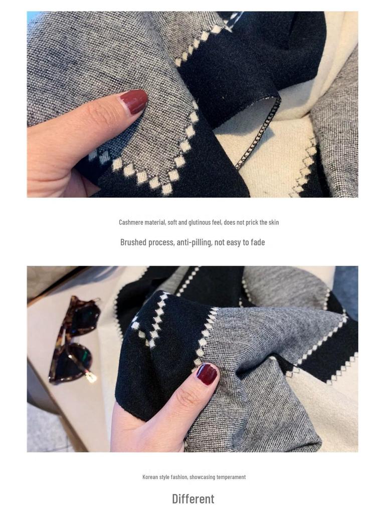 Корейский ДунДэмун Женский Высококачественный Двусторонний Кашемировый Осенне-Зимний Длинный Шарф-Шаль