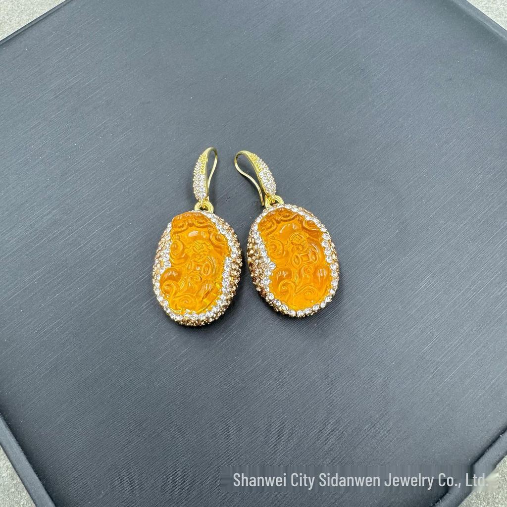 Винтажный ювелирный набор Пиксиу с барочным жемчугом и нефритом - Три предмета