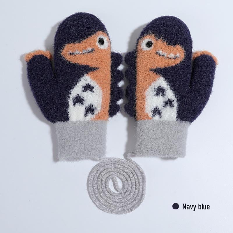 Детские зимние ветрозащитные плюшевые мультяшные перчатки на шнурке