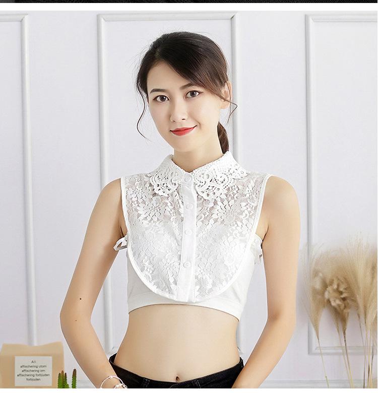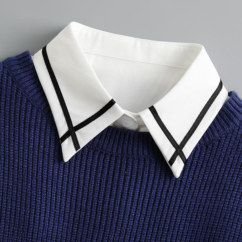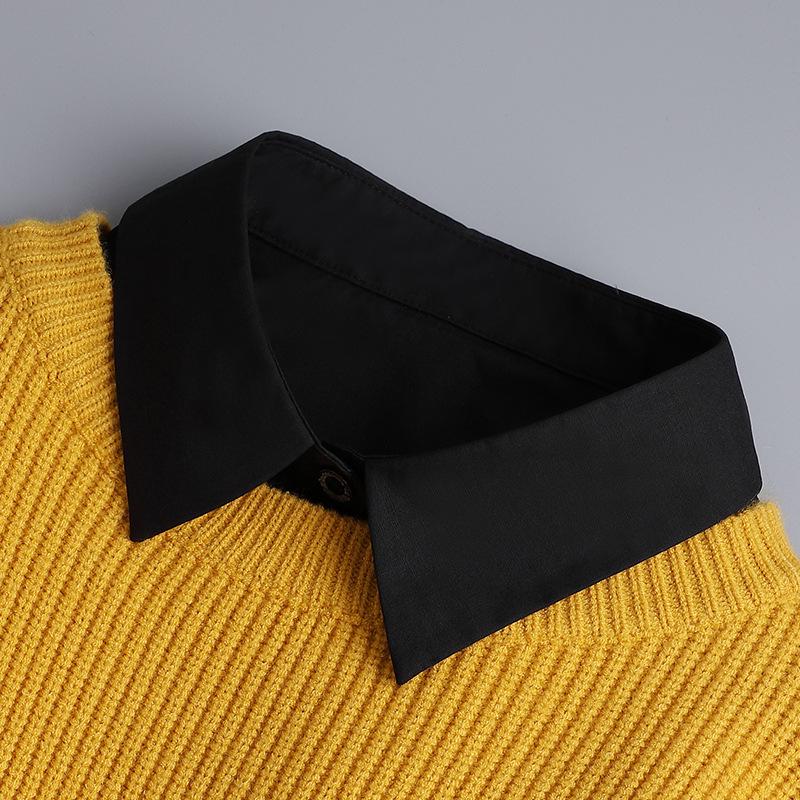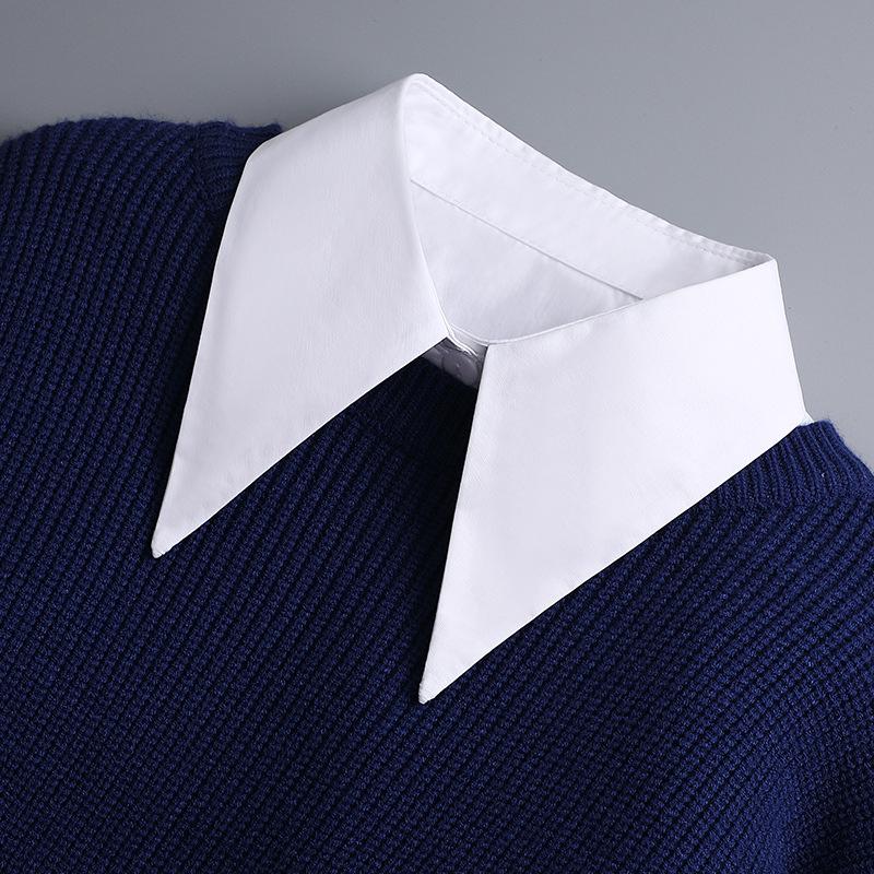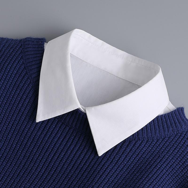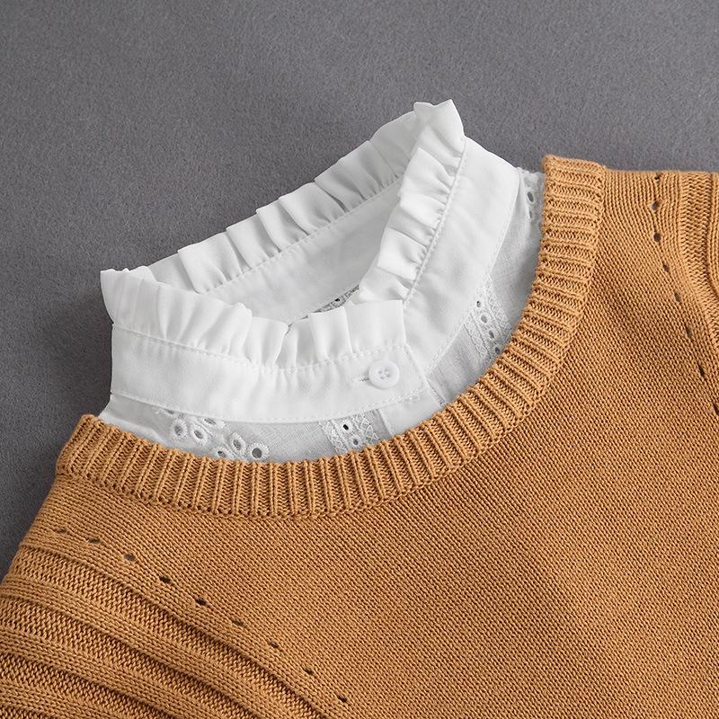 Женский универсальный белый свитер-манишка с оборками и воротником-стойкой
