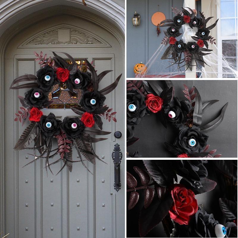 Готика Венок из черных роз Хэллоуин Венок с глазным яблоком Черная роза для входной двери окна каминной полки В помещении На улице Хэллоуин