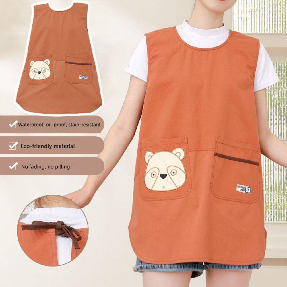 Хлопковый фартук-жилет с грязеотталкивающей пропиткой, дышащий, защищающий от загрязнений, карман с медведем, униформа для кофейни, аксессуары для одежды