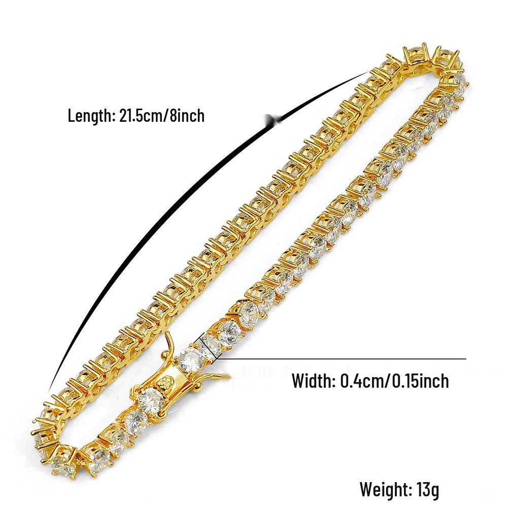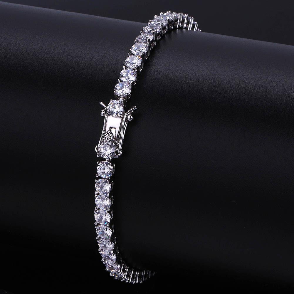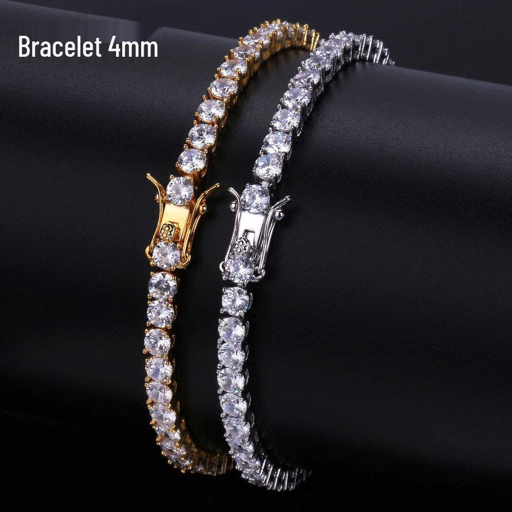 Мужской теннисный браслет с цирконами 4 мм - Европейский и американский стиль, дизайн в стиле хип-хоп