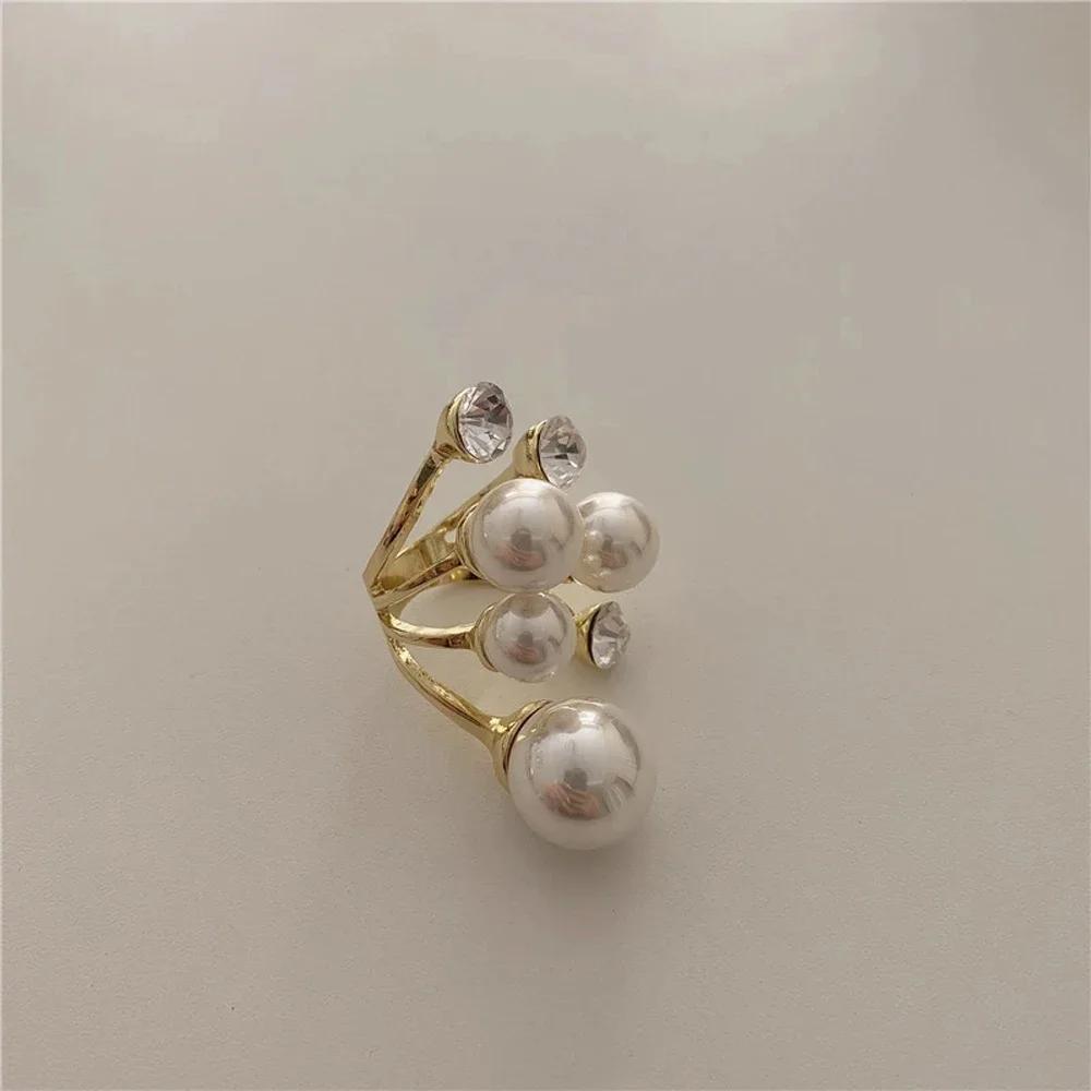 1 шт. Новое горячее Преувеличение Двухслойные Кольца с Крупным Жемчугом для Женщин Модные Аксессуары Вечеринка Шарм Кольцо Свадебные Ювелирные Изделия