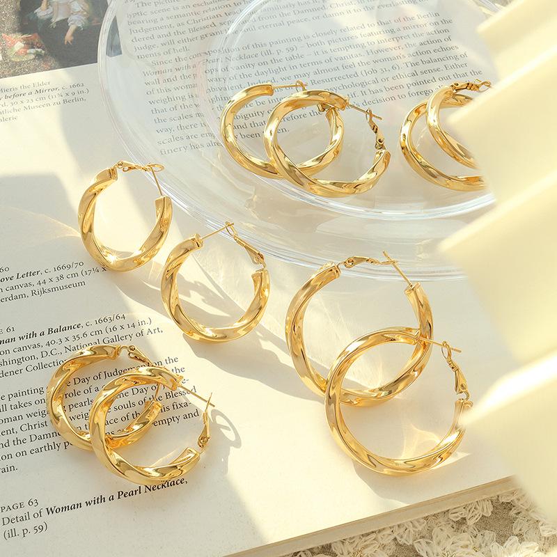 Геометрические полые ретро серьги-кольца с переплетением - Титановая сталь, Не тускнеют