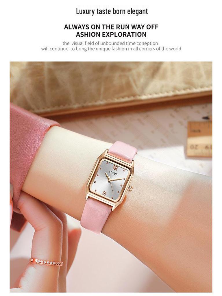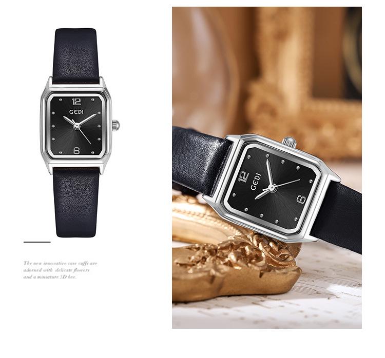 Женские кварцевые водонепроницаемые часы Gedi с квадратным циферблатом и кожаным ремешком
