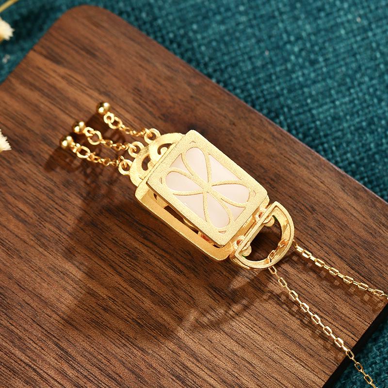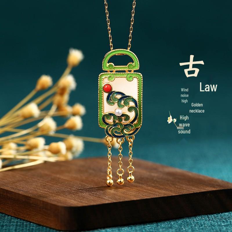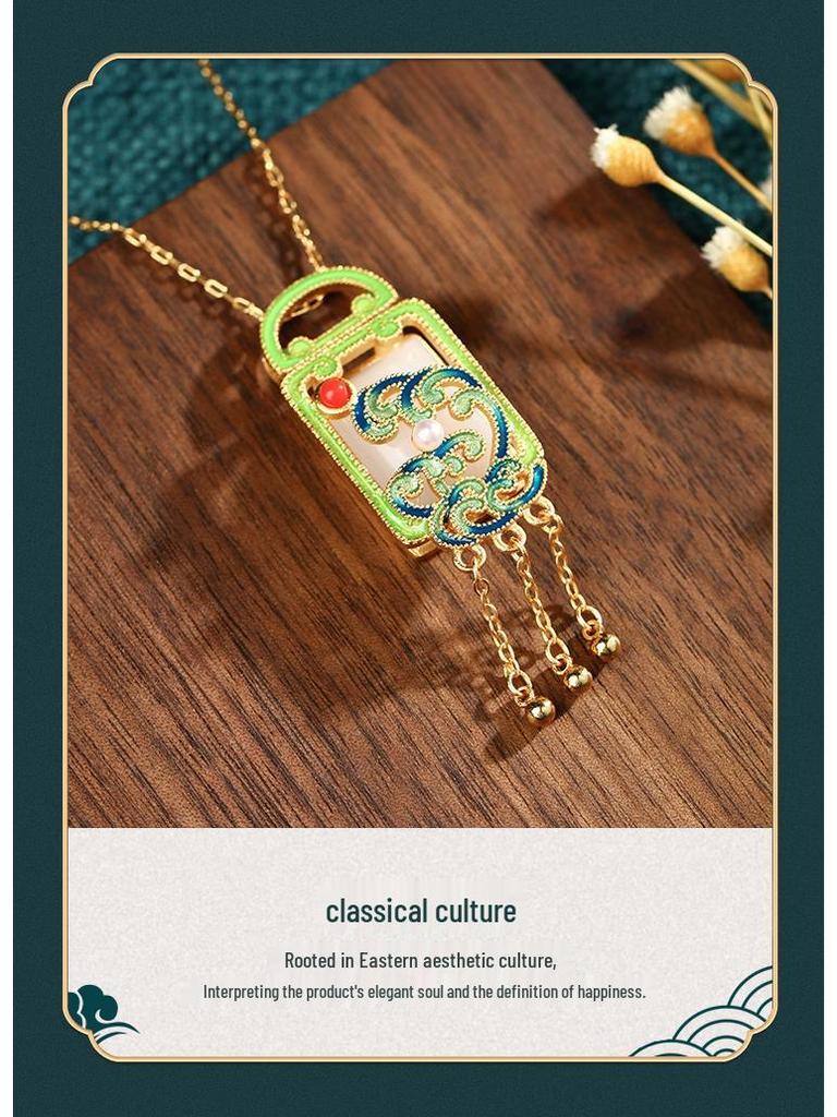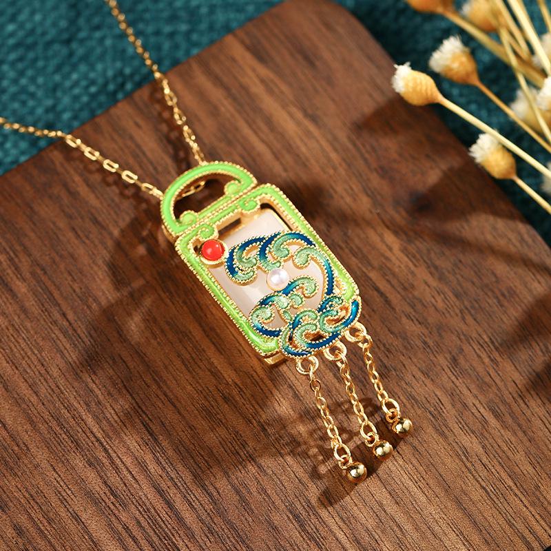 Гуочао Дворцовый стиль Перегородчатая эмаль и Имитация нефрита Хэтянь Жуи Кисточка Ожерелье