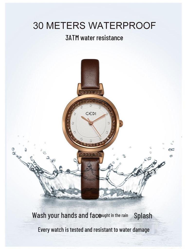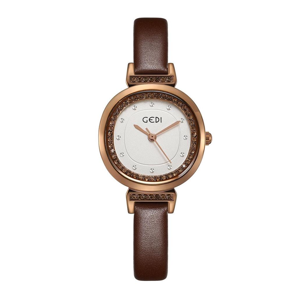 Женские кварцевые часы Gedi в винтажном стиле с кожаным ремешком