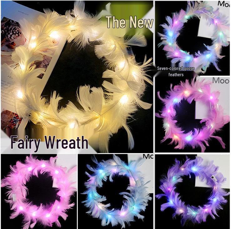Светящиеся Ангельские Перья Сказочные Украшения: Мигающие головные уборы для ночных рынков
