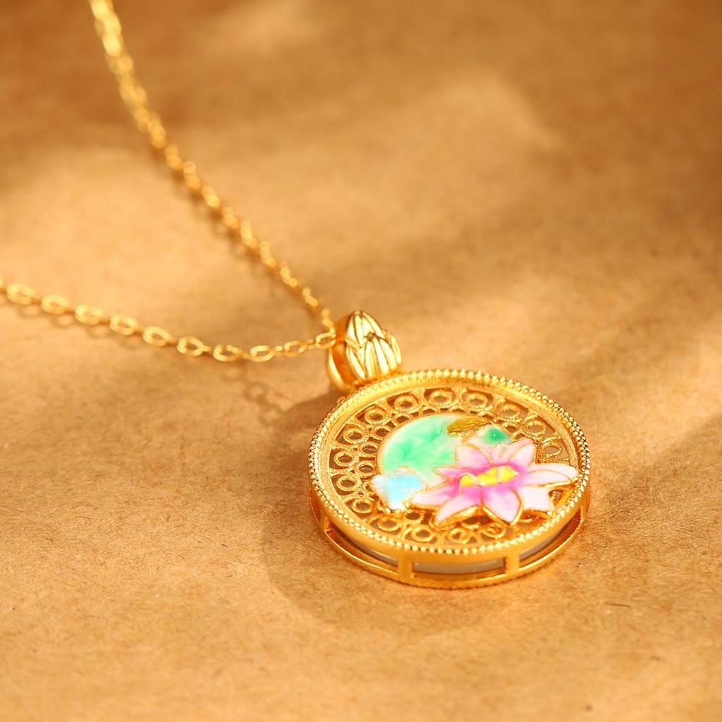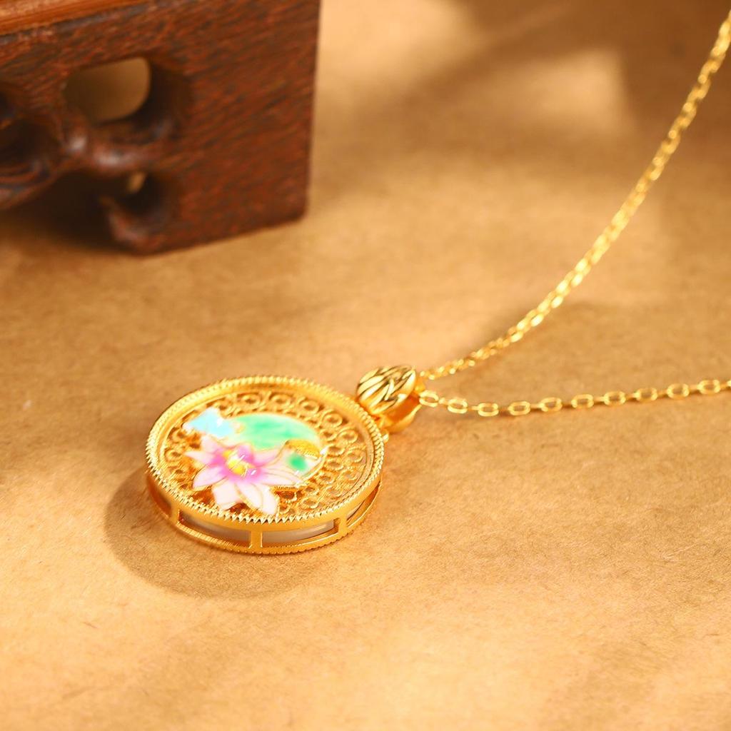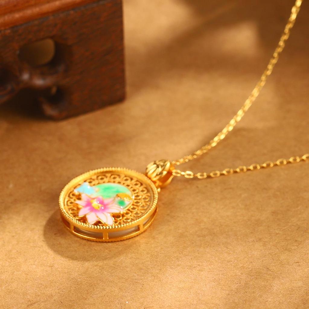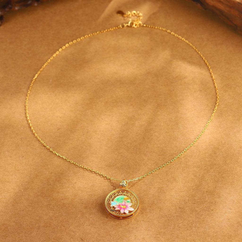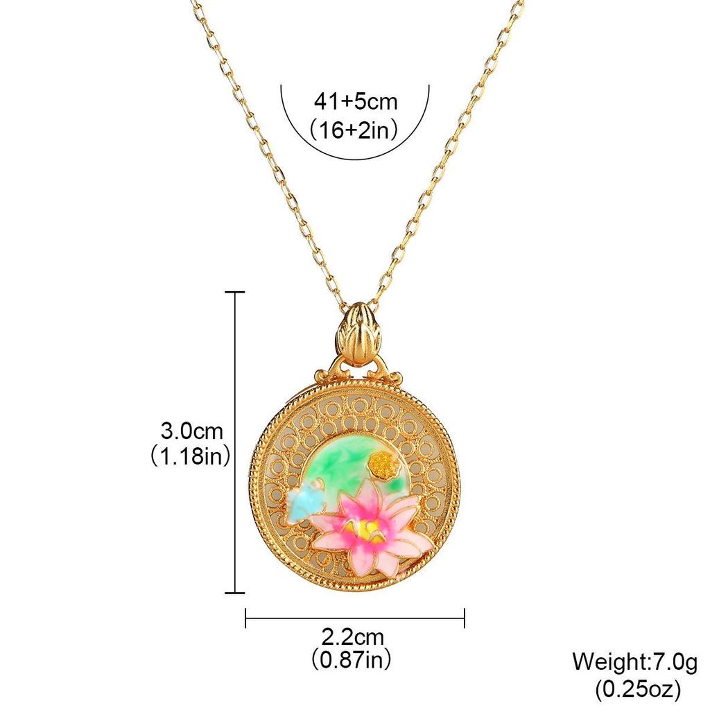 Китайское эмалевое ожерелье с подвеской в виде лотоса: Винтажный стиль, Полый дизайн, Цепочка для ключицы, Высококлассный.