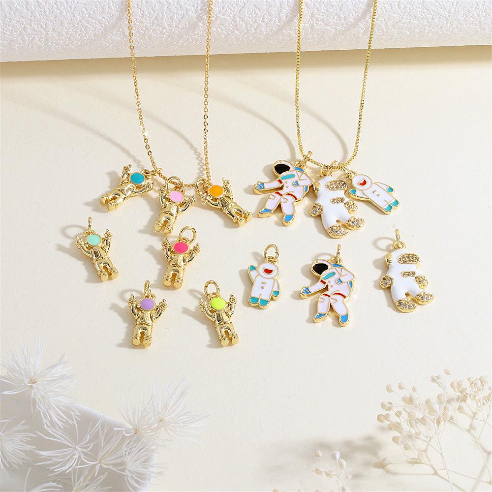 Ожерелье с подвеской-астронавтом с покрытием из 18-каратного золота, с капельной эмалью и микроинкрустацией — купить товар онлайн с бесплатной доставкой до всему миру!