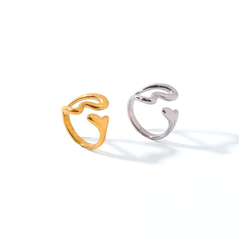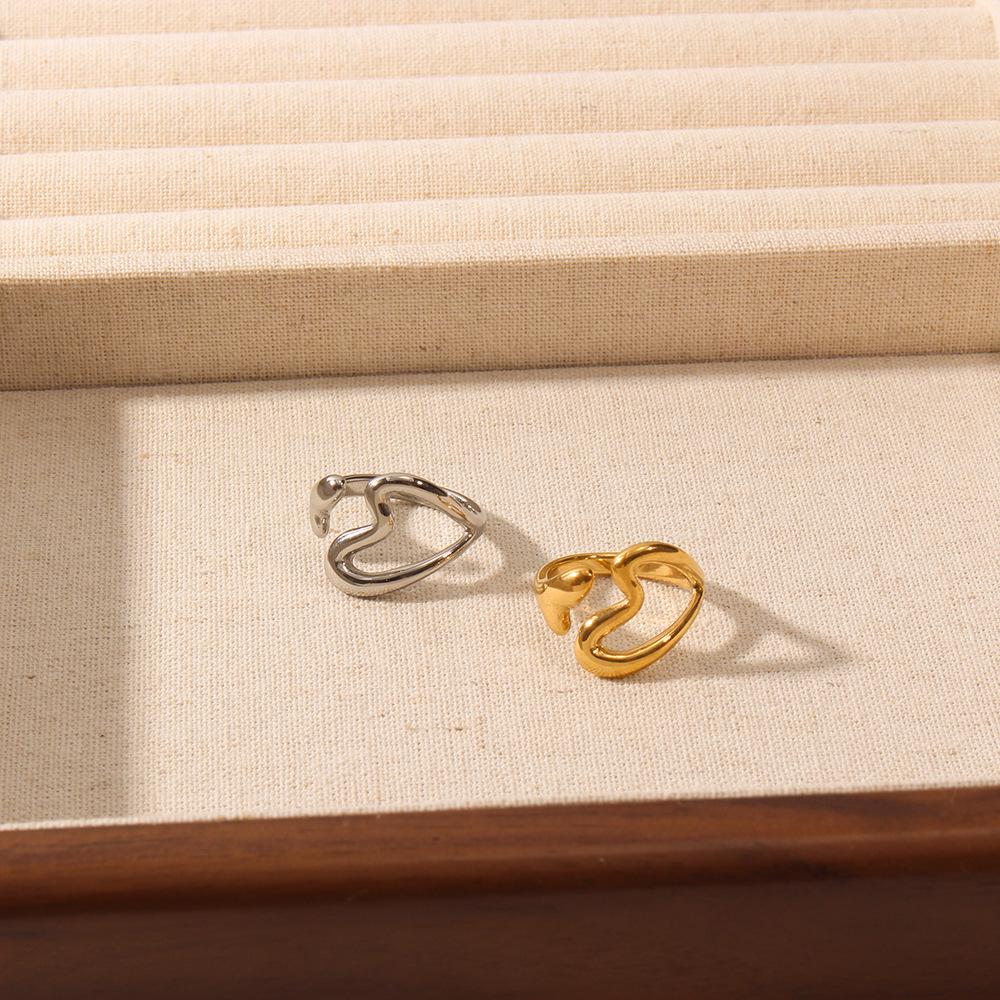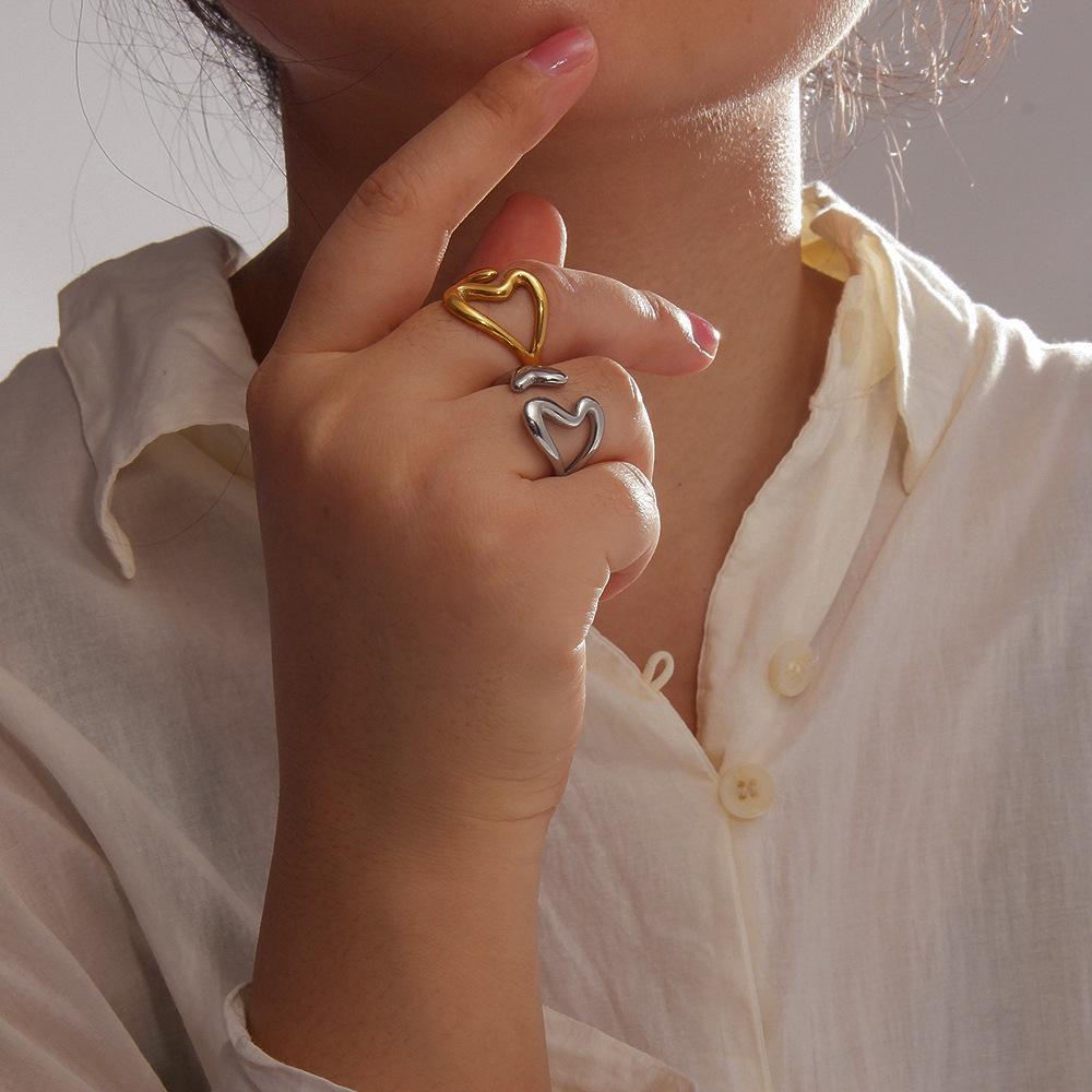 Европейское и американское кольцо из титановой стали в виде сердца с полым двойным наконечником, универсальное открытое кольцо, с покрытием из 18-каратного золота