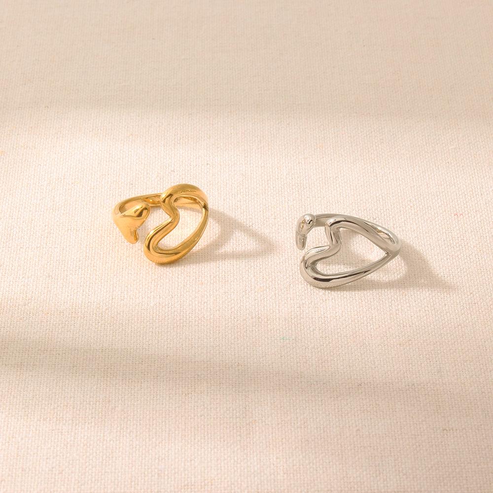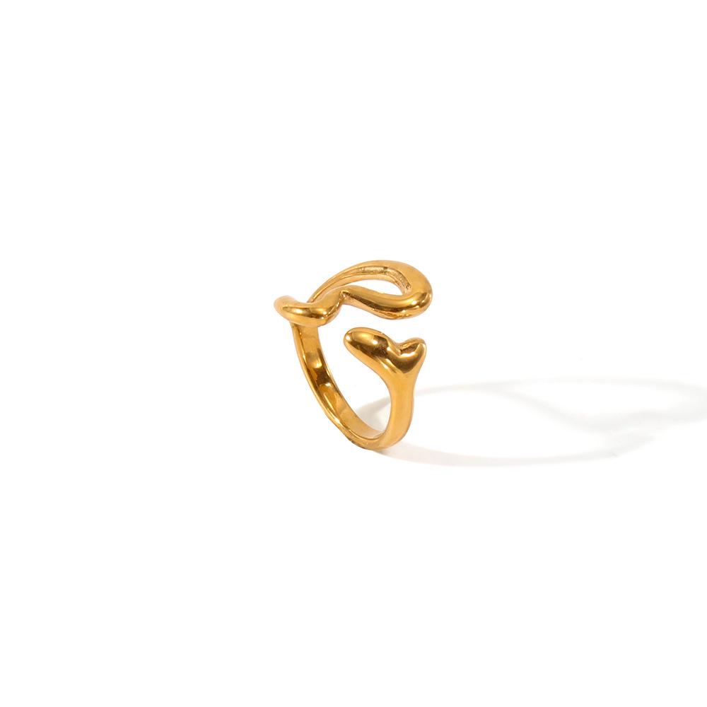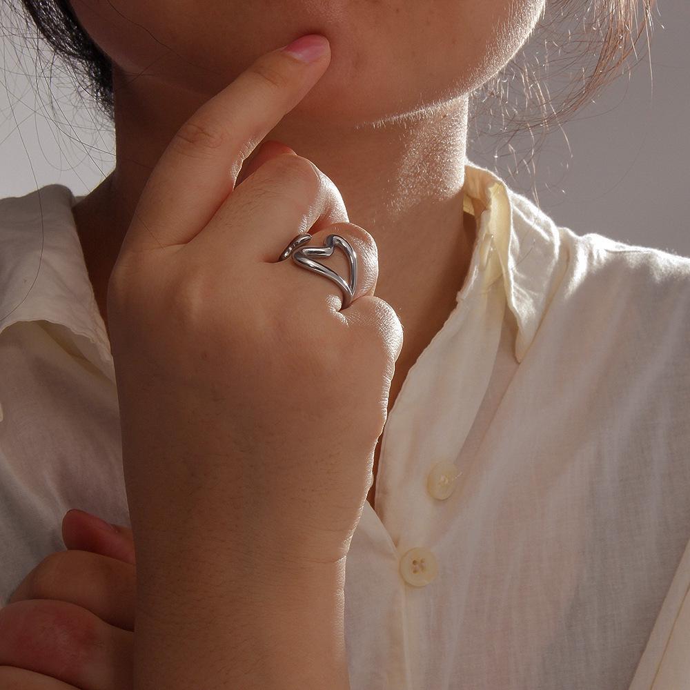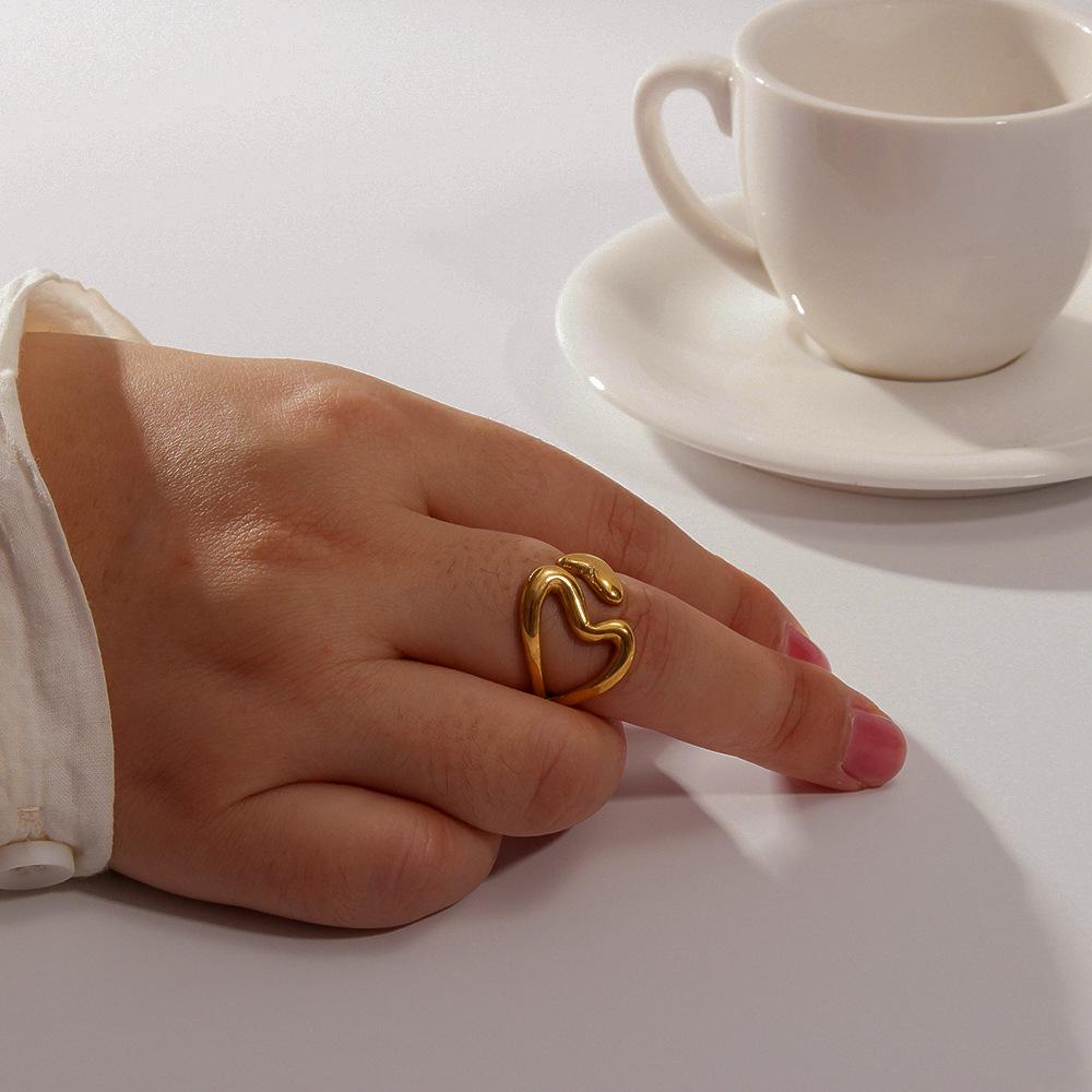 Европейское и американское кольцо из титановой стали в виде сердца с полым двойным наконечником, универсальное открытое кольцо, с покрытием из 18-каратного золота