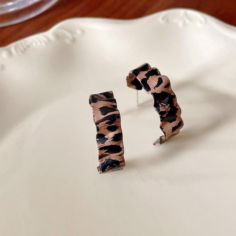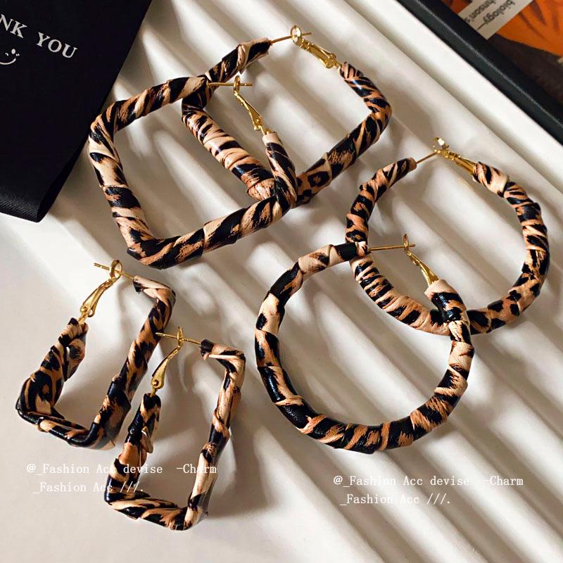 Серьги-кольца геометрической формы, обернутые кожей с леопардовым принтом - Трендовый и шикарный европейский стиль для женщин