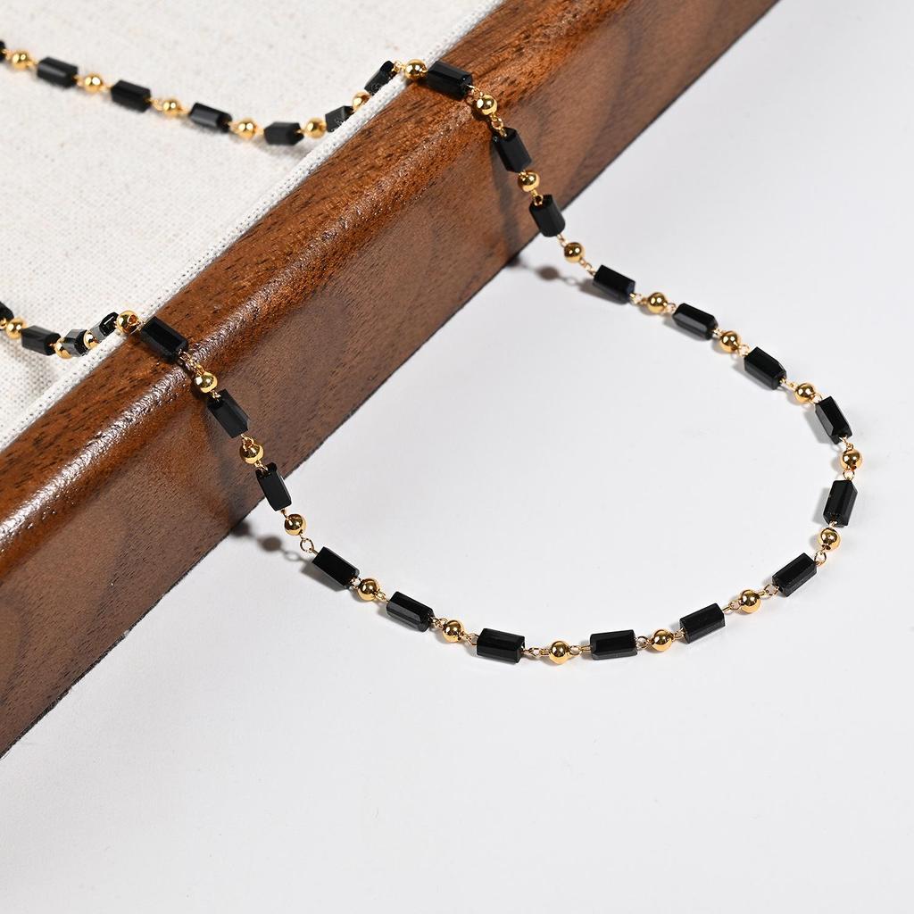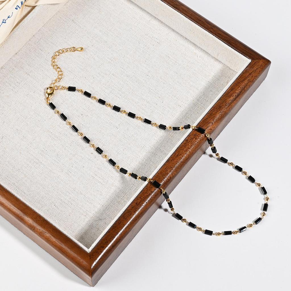 Французское ретро черная шпинель ручной работы ожерелье из бусин