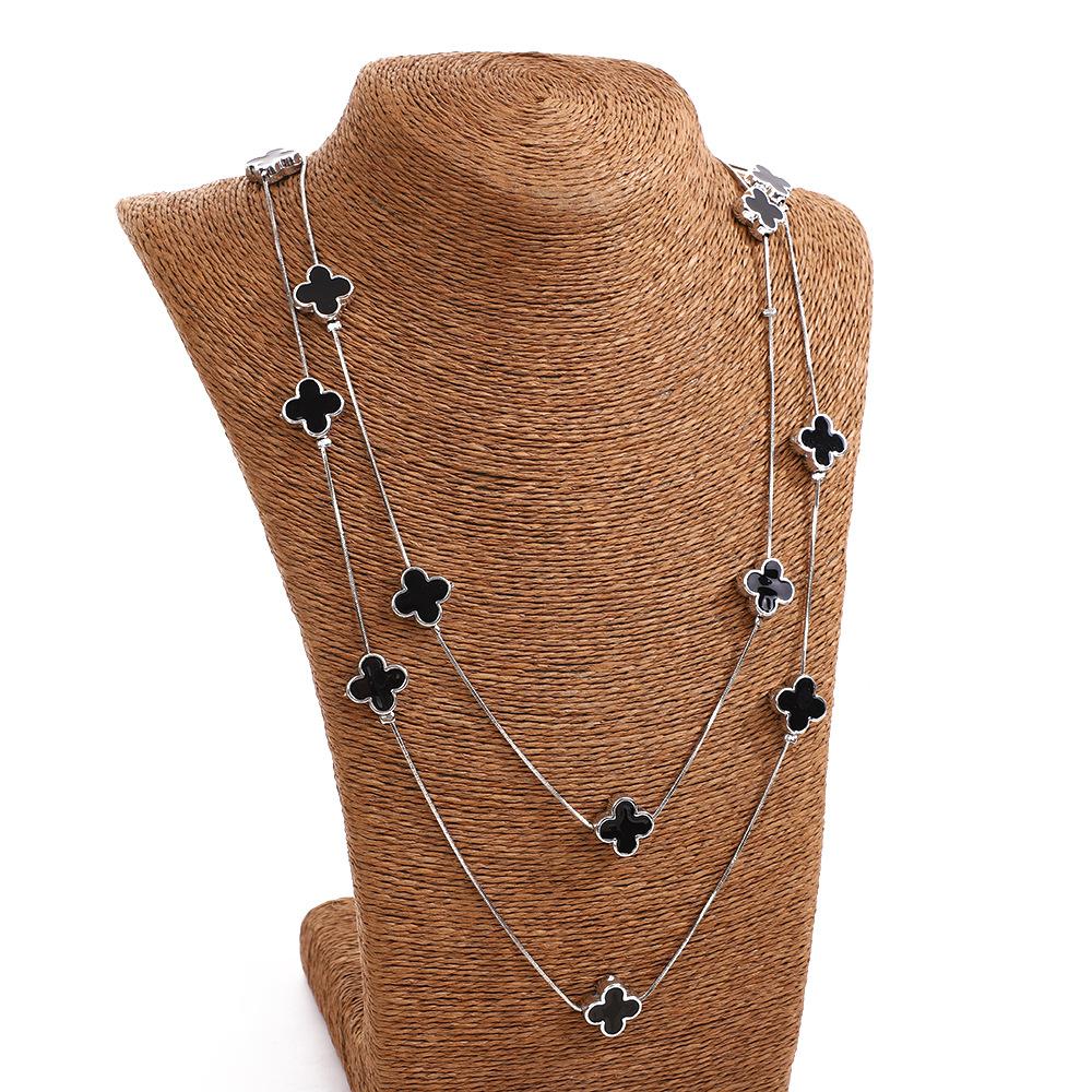 Двойное ожерелье с четырехлистным клевером, многослойная длинная женская цепочка для свитера, новые аксессуары для одежды осень-зима