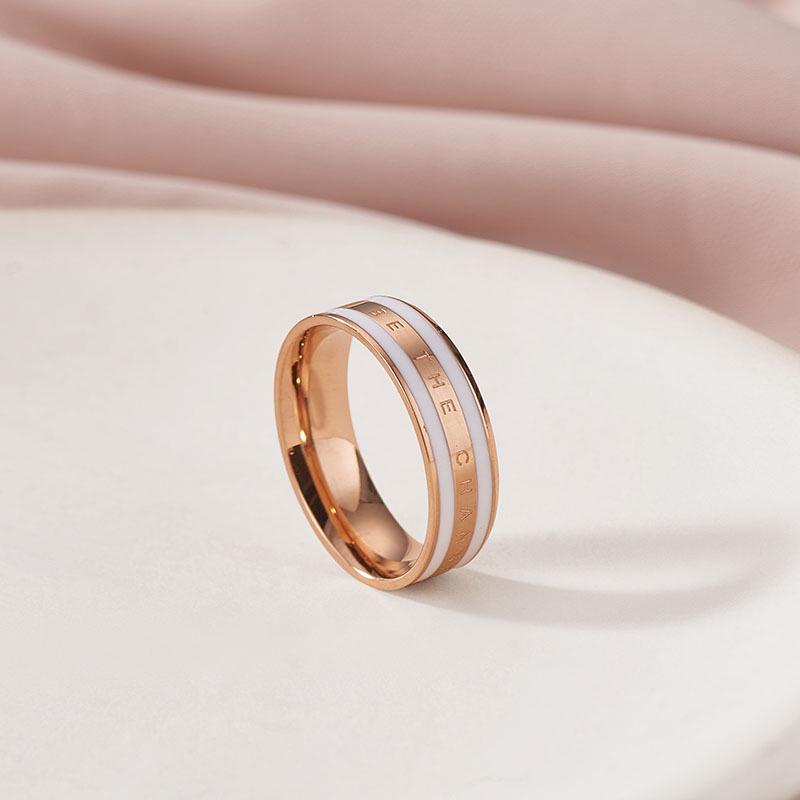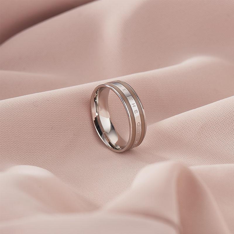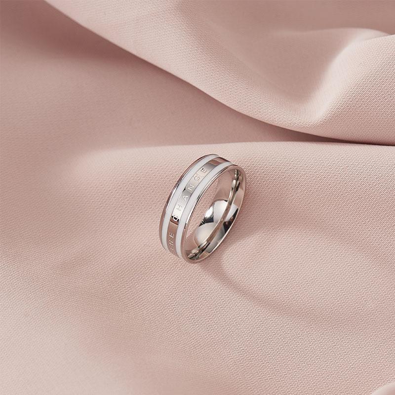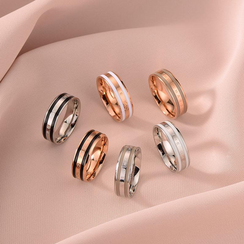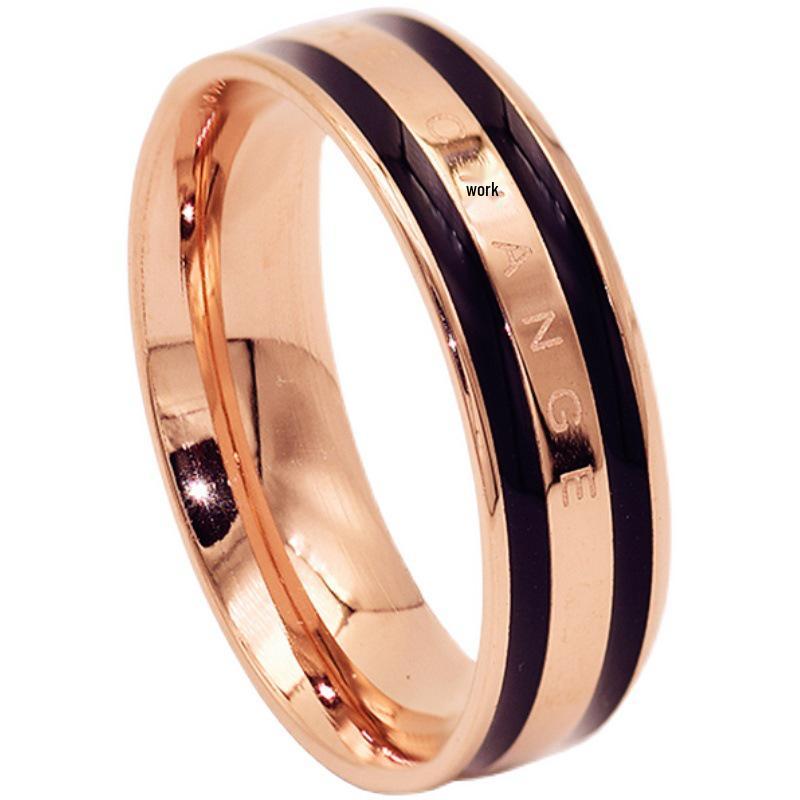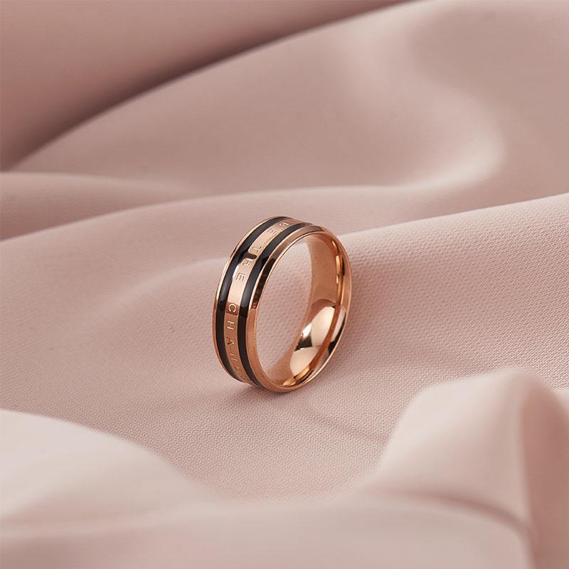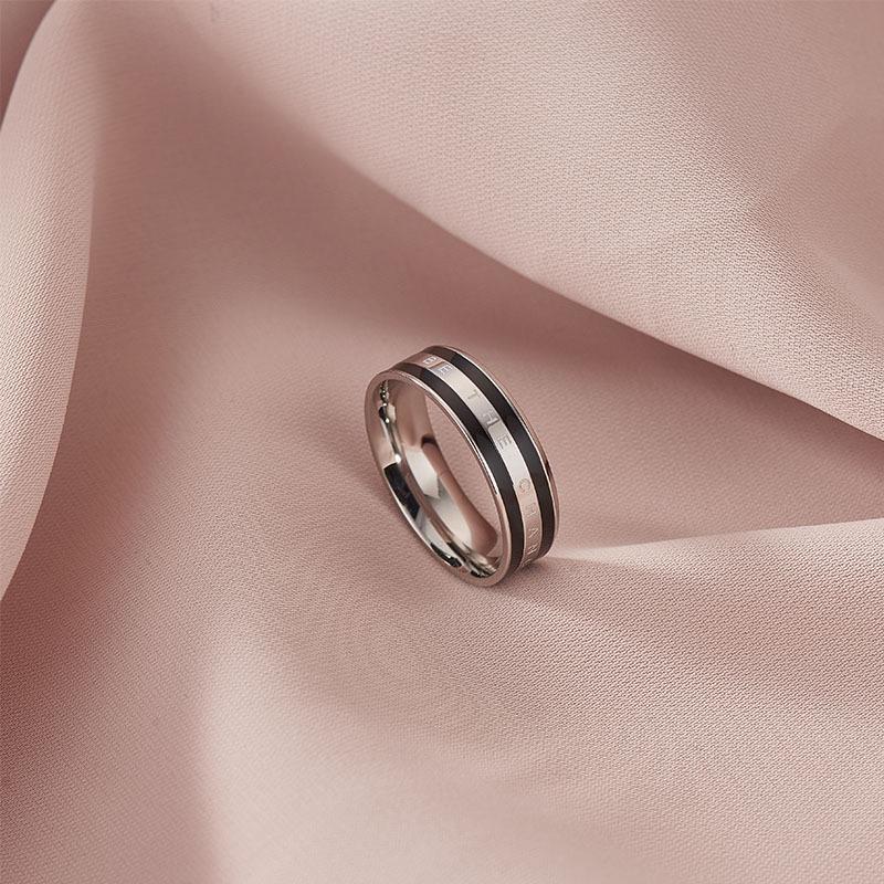 Женское широкое кольцо из титановой стали с черной эпоксидной эмалью и римскими цифрами