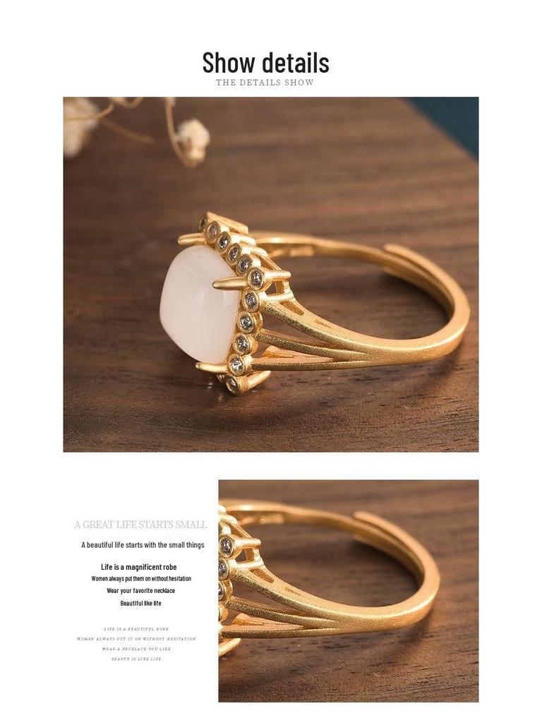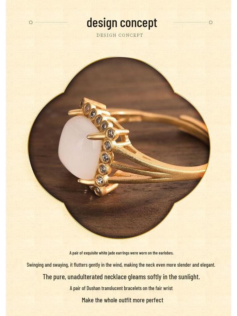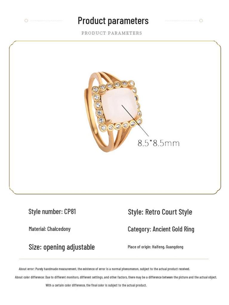 Китайское придворное квадратное кольцо из белого нефрита и агата с золотом - Аксессуар для древнего костюма ханьфу