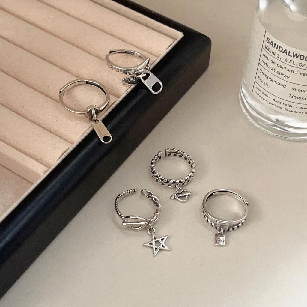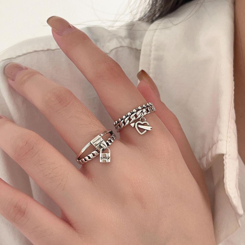 Корея S925 Стерлинговое Серебро Женское Винтажное Кольцо с Открытой Шиной - Простое, Легкая Роскошь, Дизайн Тяжелой Промышленности