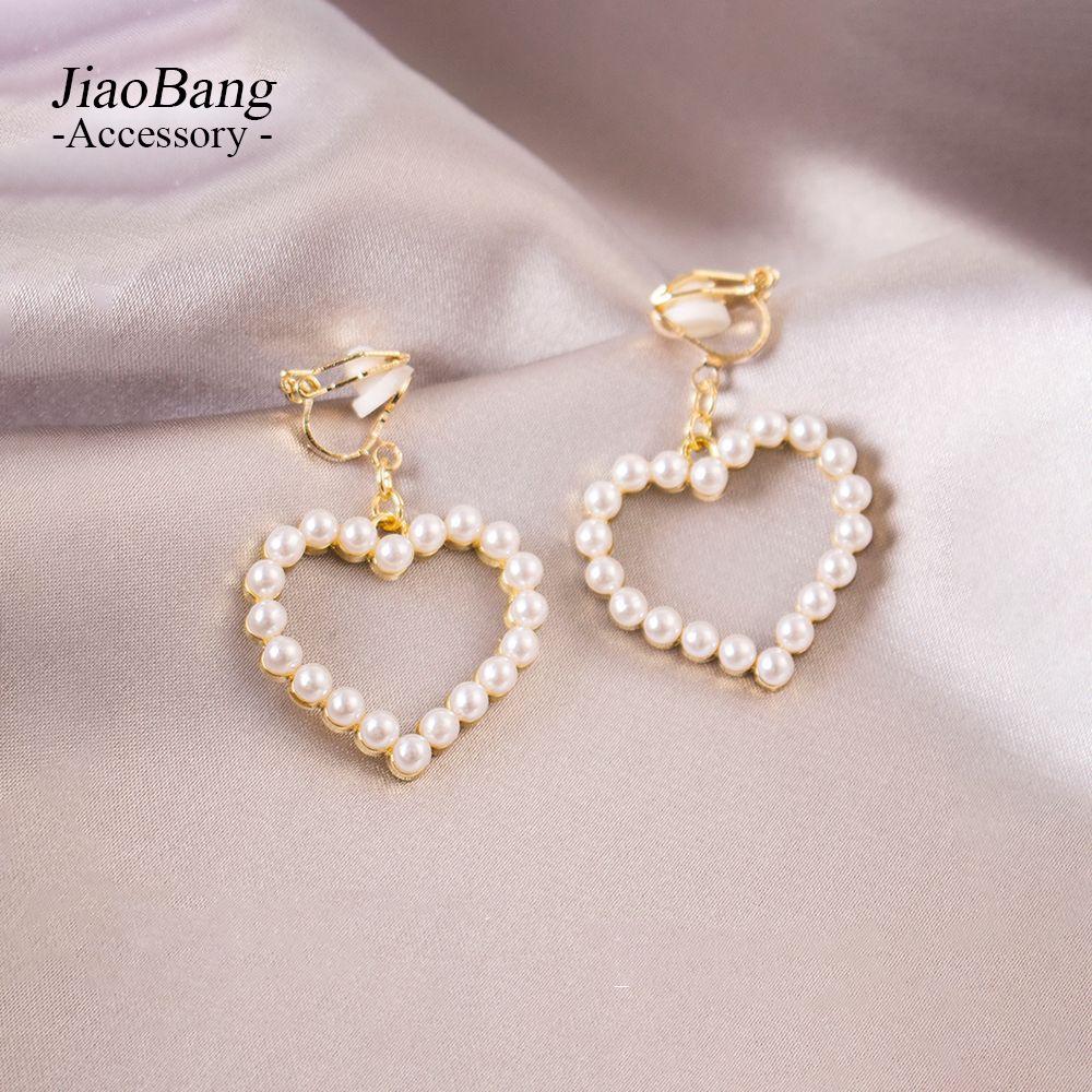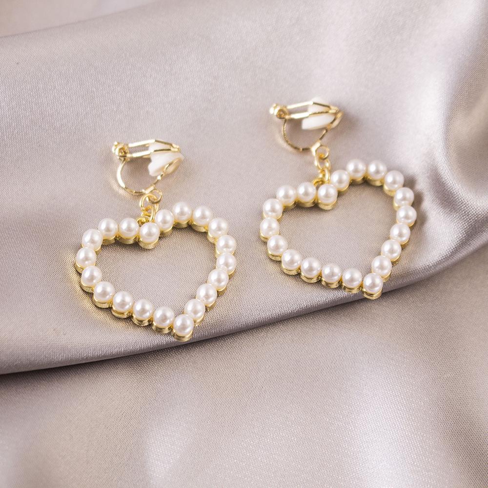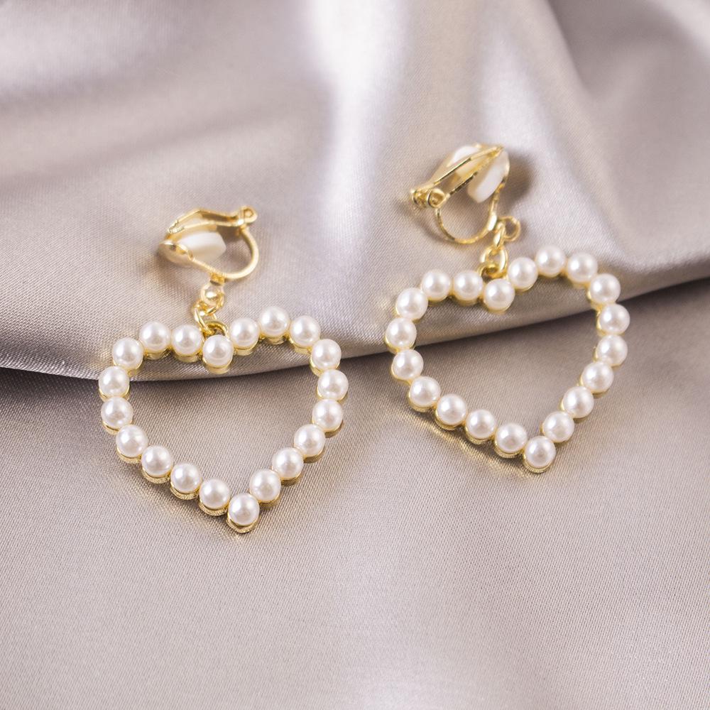 Элегантные клипсы для ушей с жемчужным сердцем и треугольником - Не требуют прокола, Модные и универсальные серьги для женщин