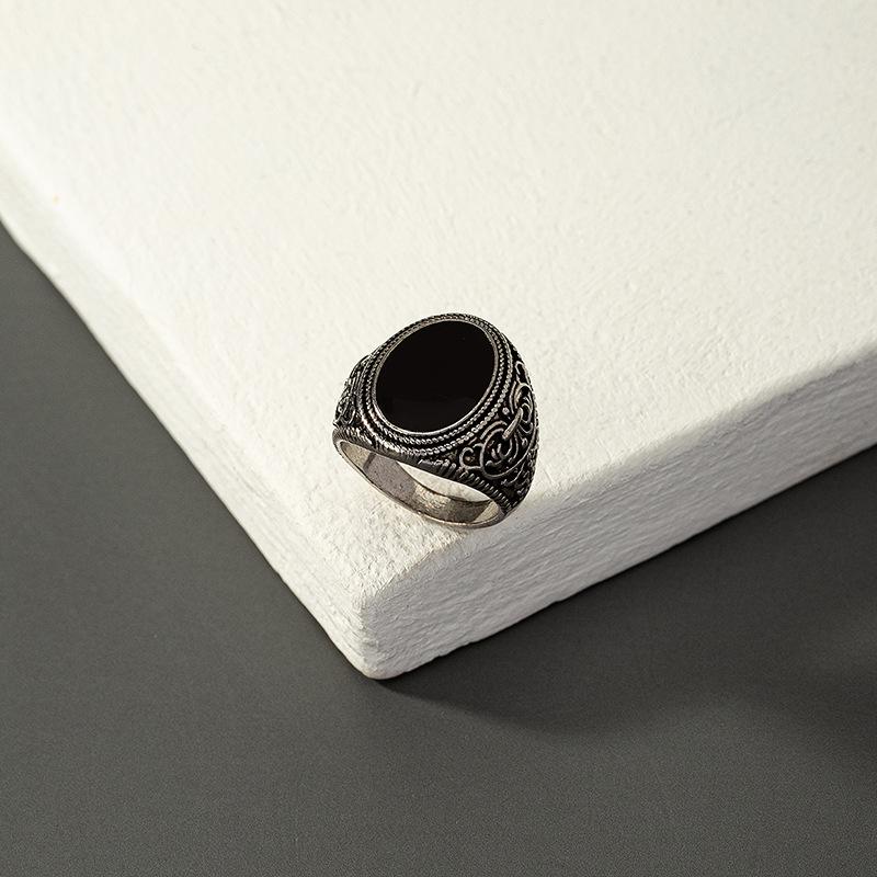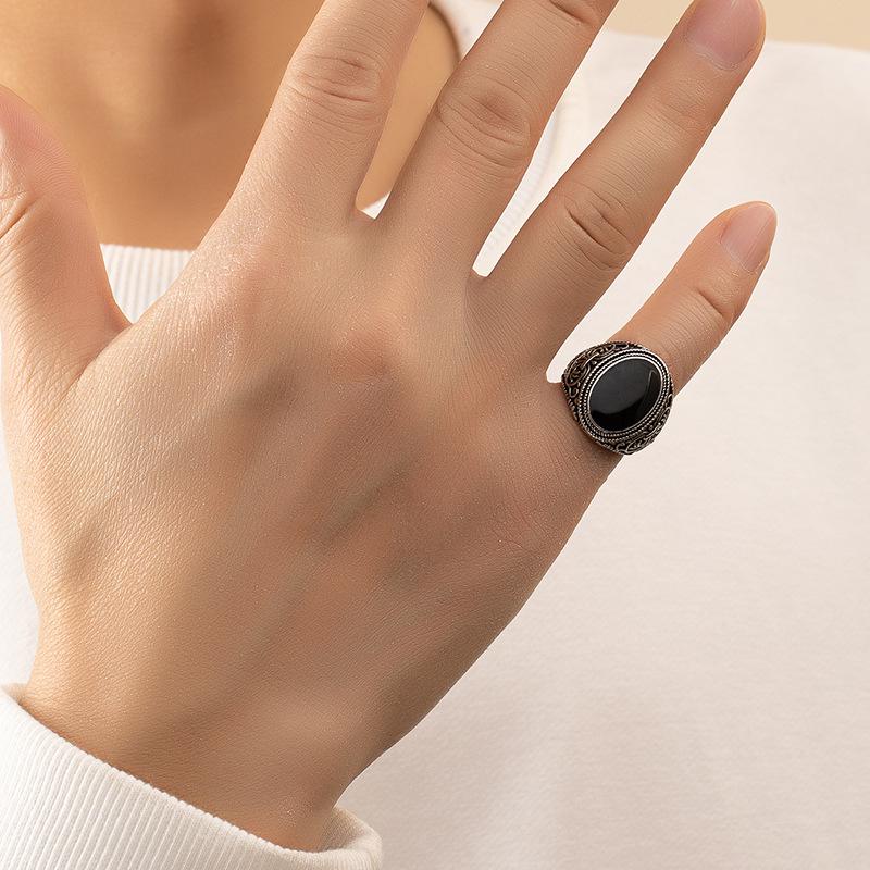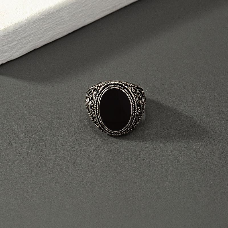 Ретро тренд кольцо с черным драгоценным камнем: Мужской геометрический хип-хоп уличный стиль
