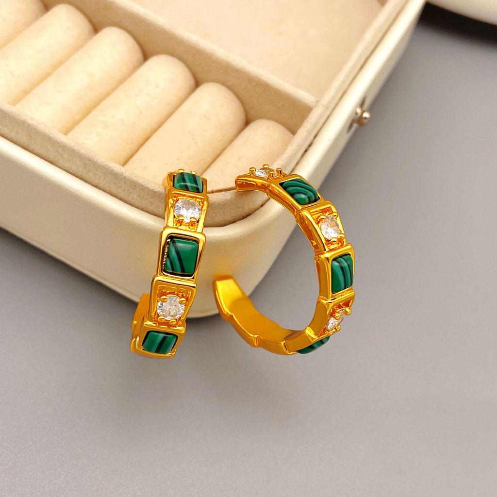 Винтажные европейские и американские серьги-каффы из малахита в форме буквы С: Роскошные ювелирные изделия класса люкс для женщин