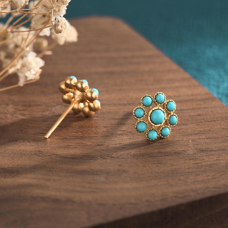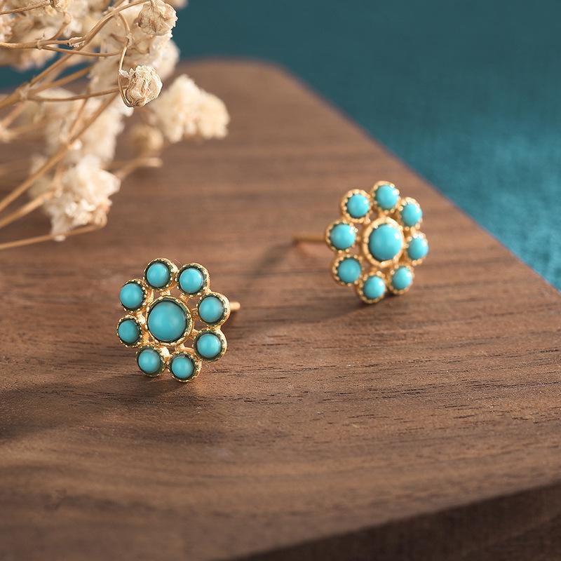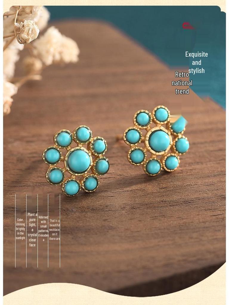Бирюзовые серьги-чонсам: Дизайн в стиле «корт» с иглой из серебра 925 пробы
