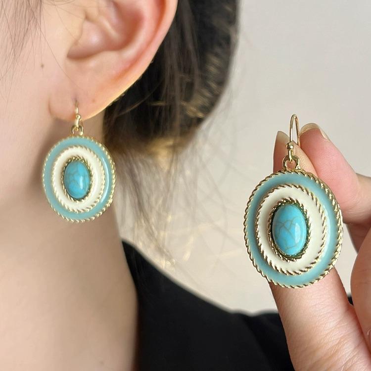 Французские ретро овальные серьги и ожерелье из бирюзовой эмали с натуральным камнем — купить товар онлайн с бесплатной доставкой по всему миру!