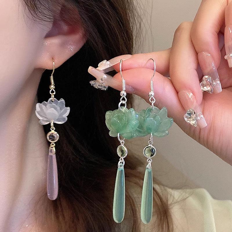 Серьги-капли из смолы в китайском стиле с лотосом - Модный старинный дизайн