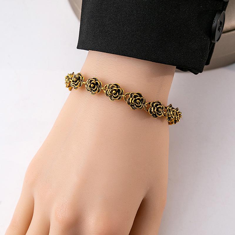 Винтажный металлический браслет-цветок «Ретро роза» - Европейский/Американский стиль легкой роскоши, Дизайн с бусинами, Нишевые украшения с холодным темпераментом