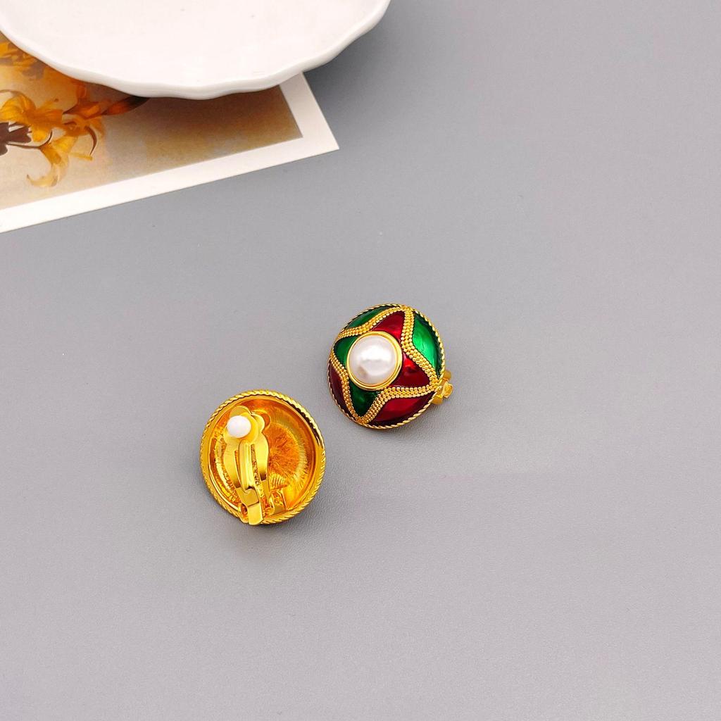 Ретро Красочные Эмалевые Жемчужные Клипсы: Модные серьги из латуни с покрытием из 18-каратного золота