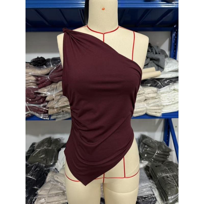 Весна Лето Необычная Футболка с открытым плечом Облегающий Топ без рукавов Короткий Топ с диагональным воротником Сладкий Пряный Стиль Вечеринка Жилет Уличная Одежда Рубашка Одежда