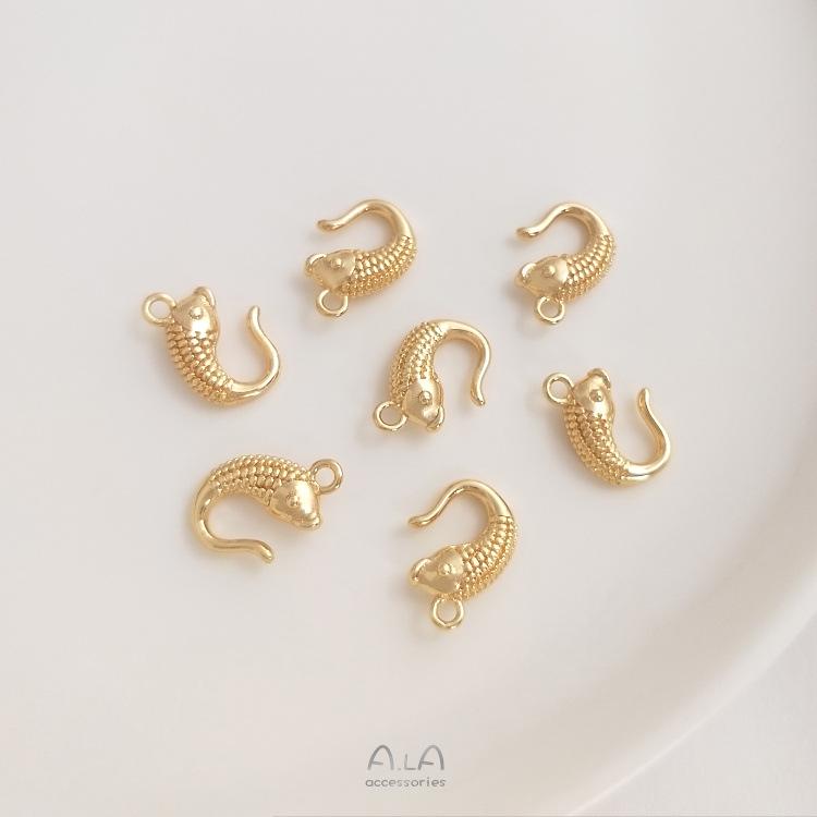 Подвеска в форме рыбы из 14-каратного золота с застежкой, сохраняющей цвет, для изготовления ожерелий своими руками.