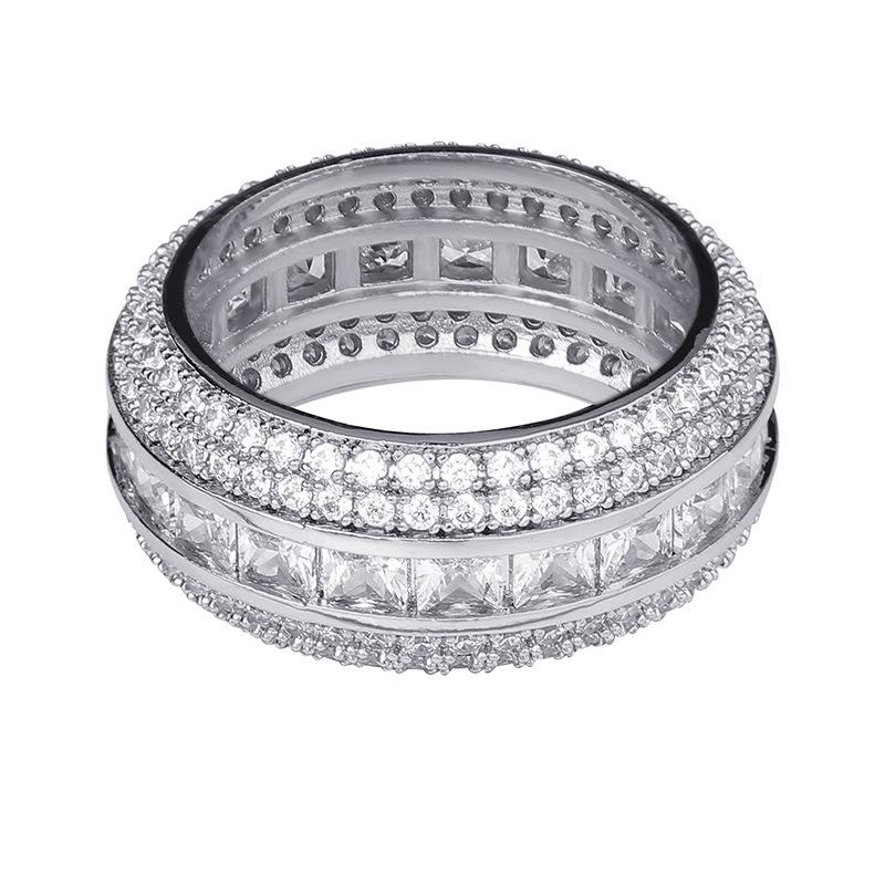 Мужское хип-хоп золотое кольцо с квадратными циркониевыми бриллиантами и дизайном в пять рядов