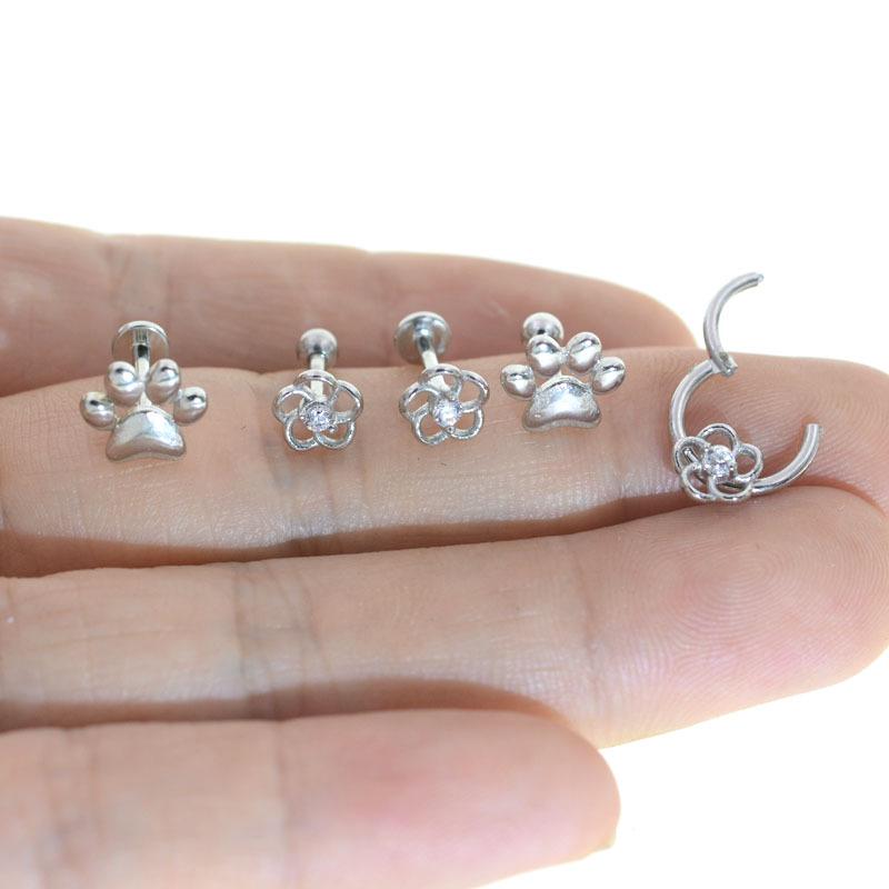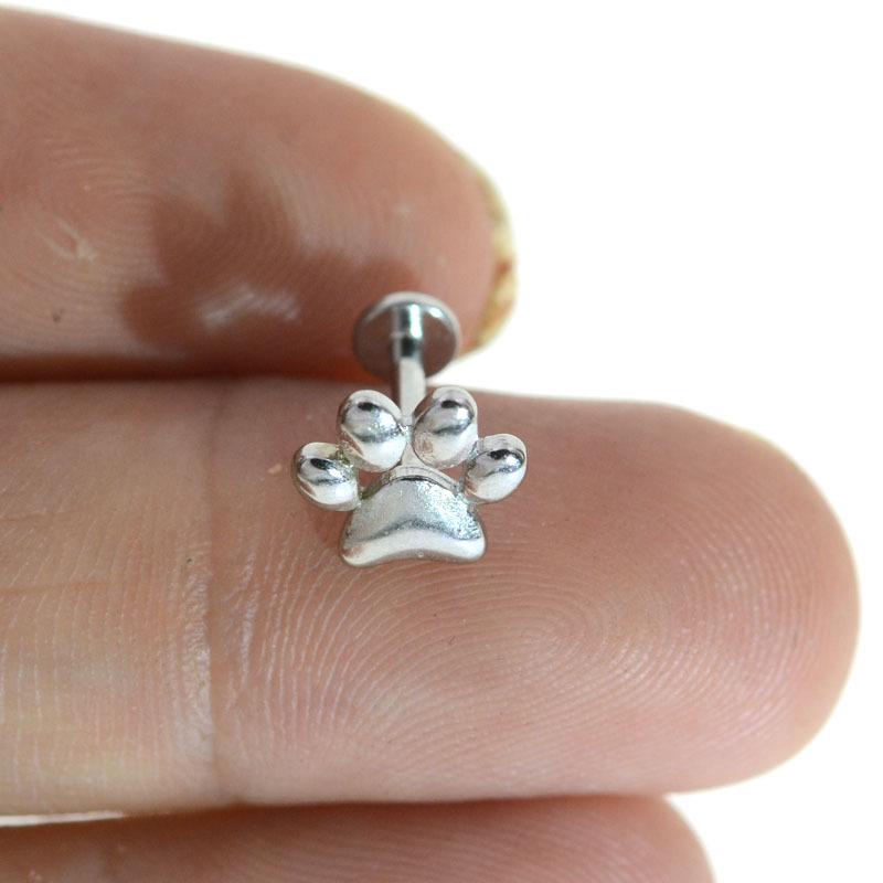 Серьги-пусеты из нержавеющей стали 316L в виде кошачьей лапки для пирсинга губы и хеликса