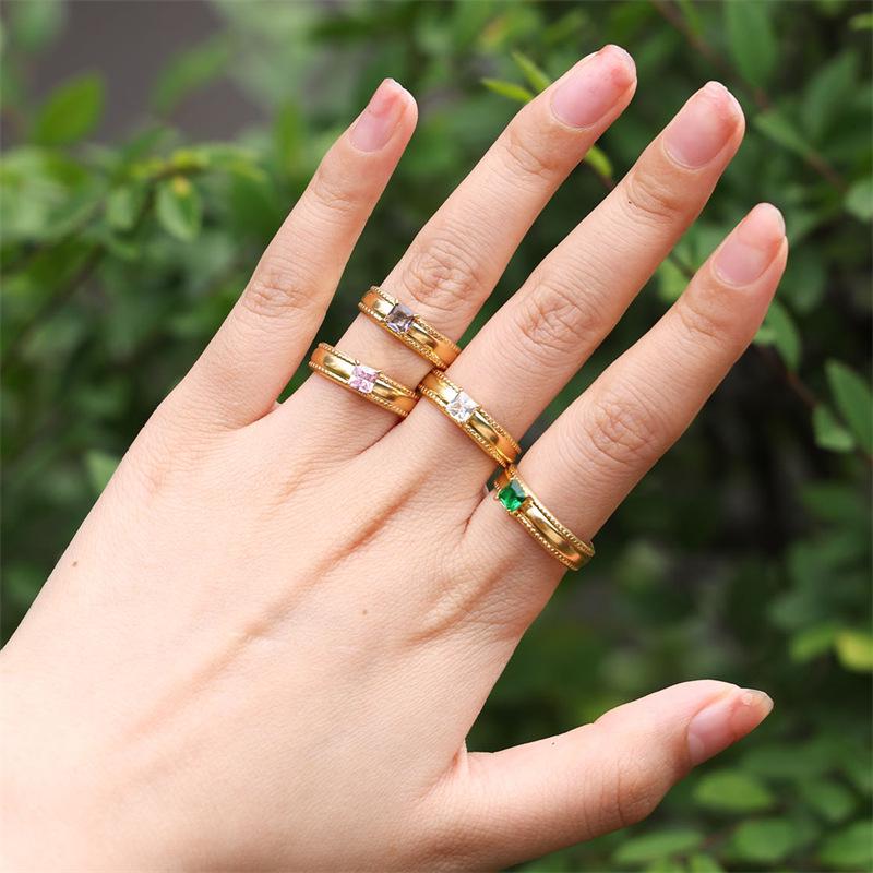 Кольцо с цирконом с позолотой 18 карат: Модные европейские и американские украшения из нержавеющей стали для женщин