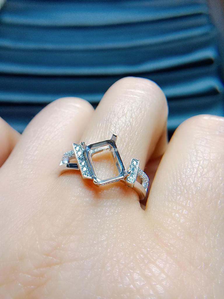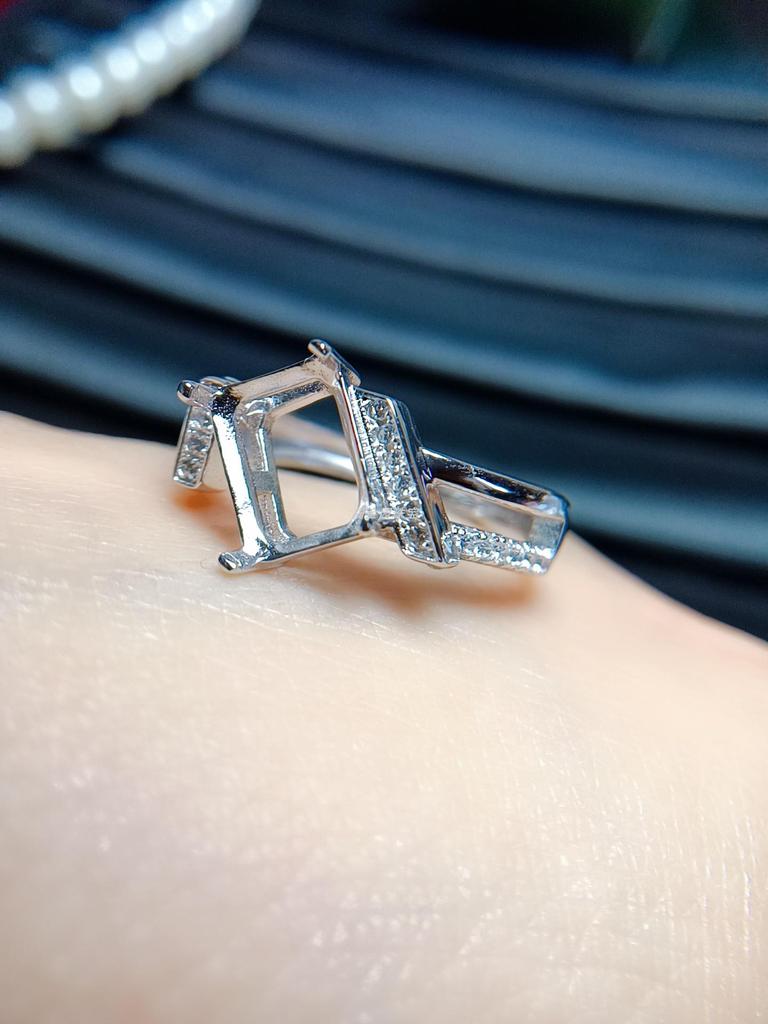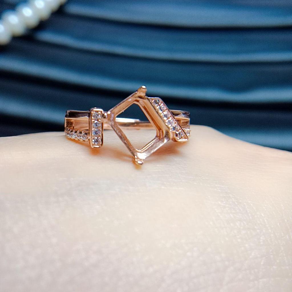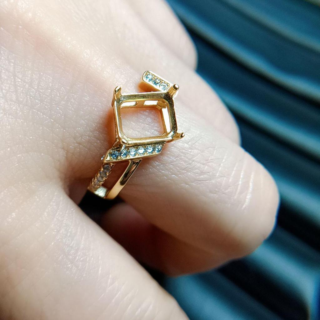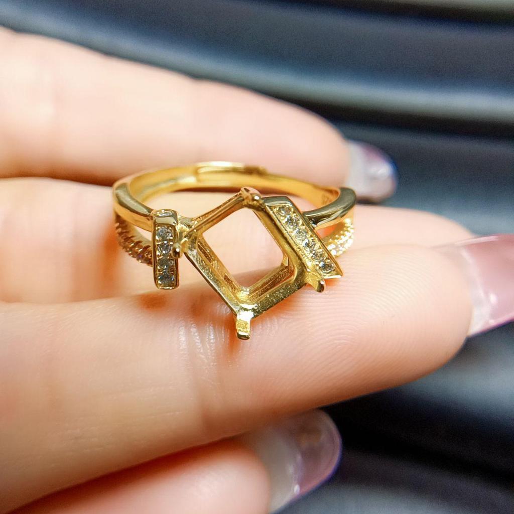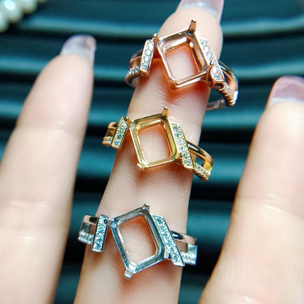 Регулируемая основа для кольца из стерлингового серебра S925 прямоугольной формы, 7x9 мм, доступна в белом или розовом золоте.