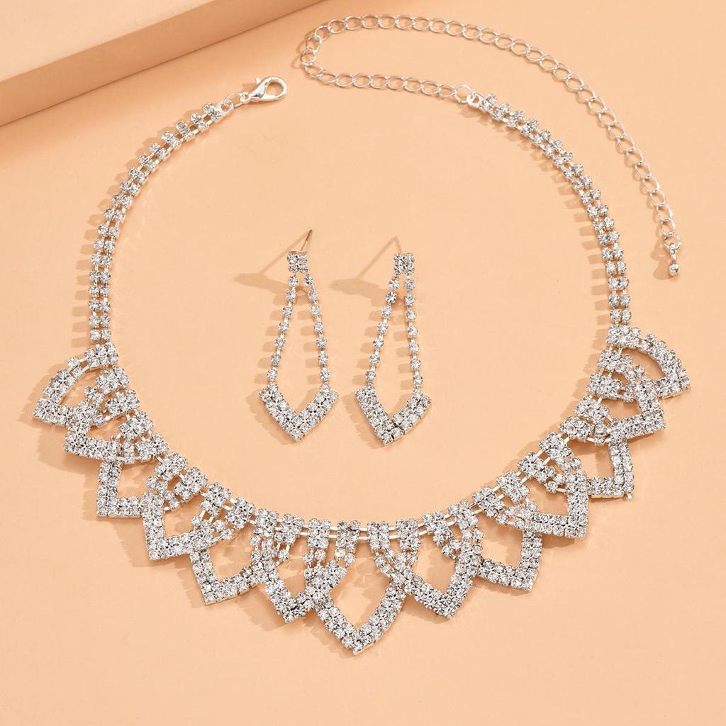 Европейская и американская модная бижутерия, набор колье и серег со стразами для вечернего наряда, женский